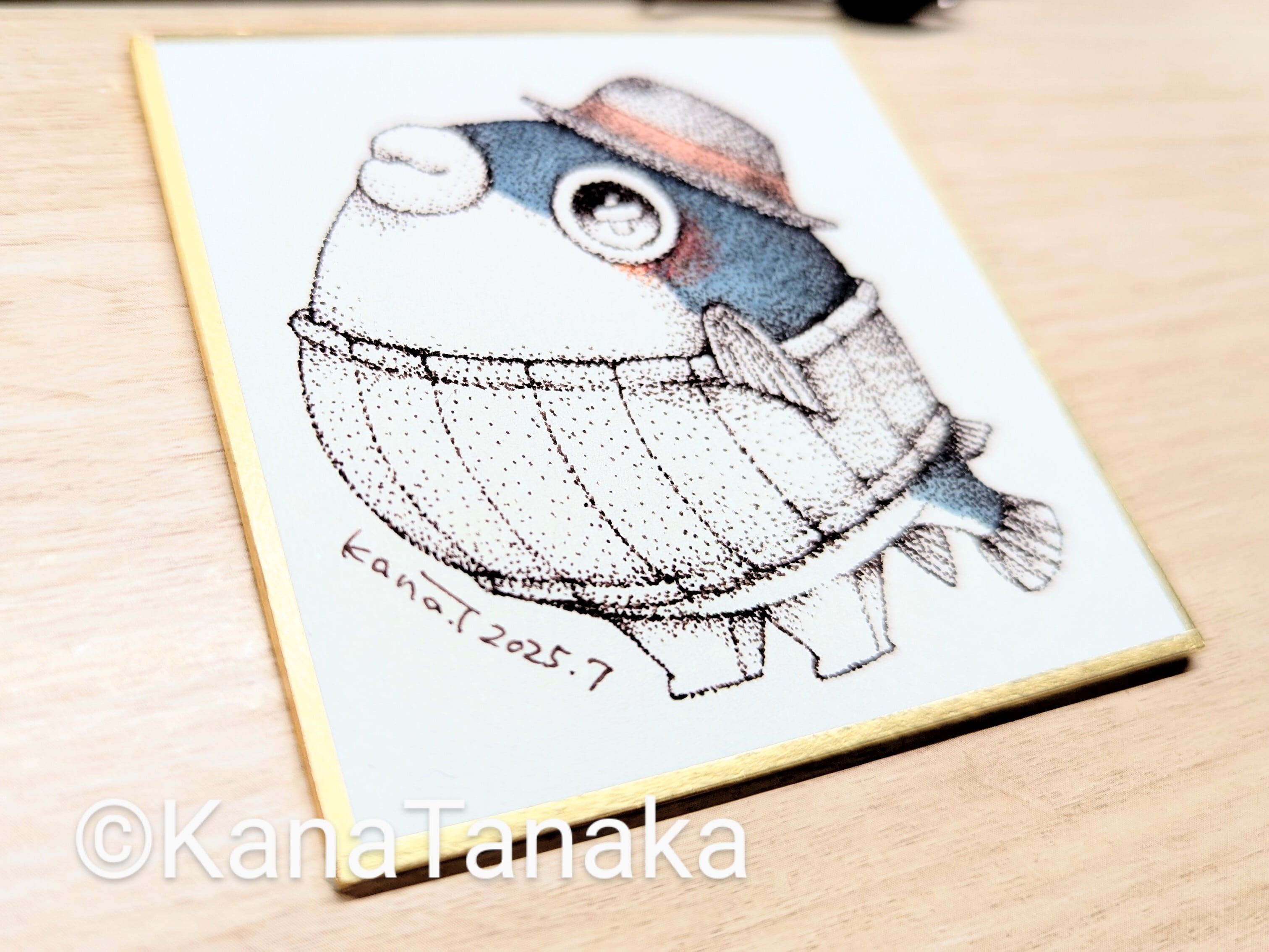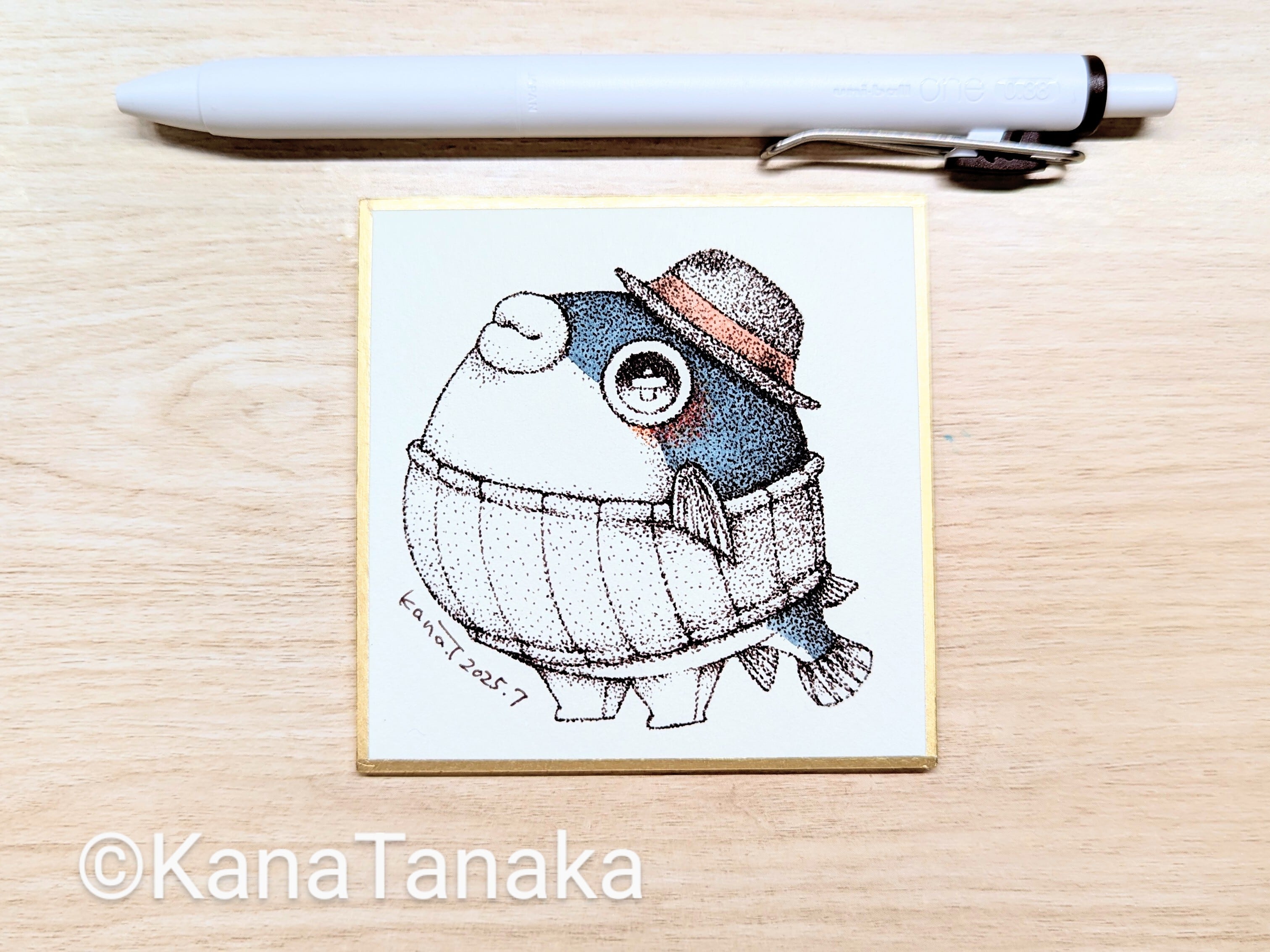 [豆色紙サイズ]ふうてんのフグの子・点描画