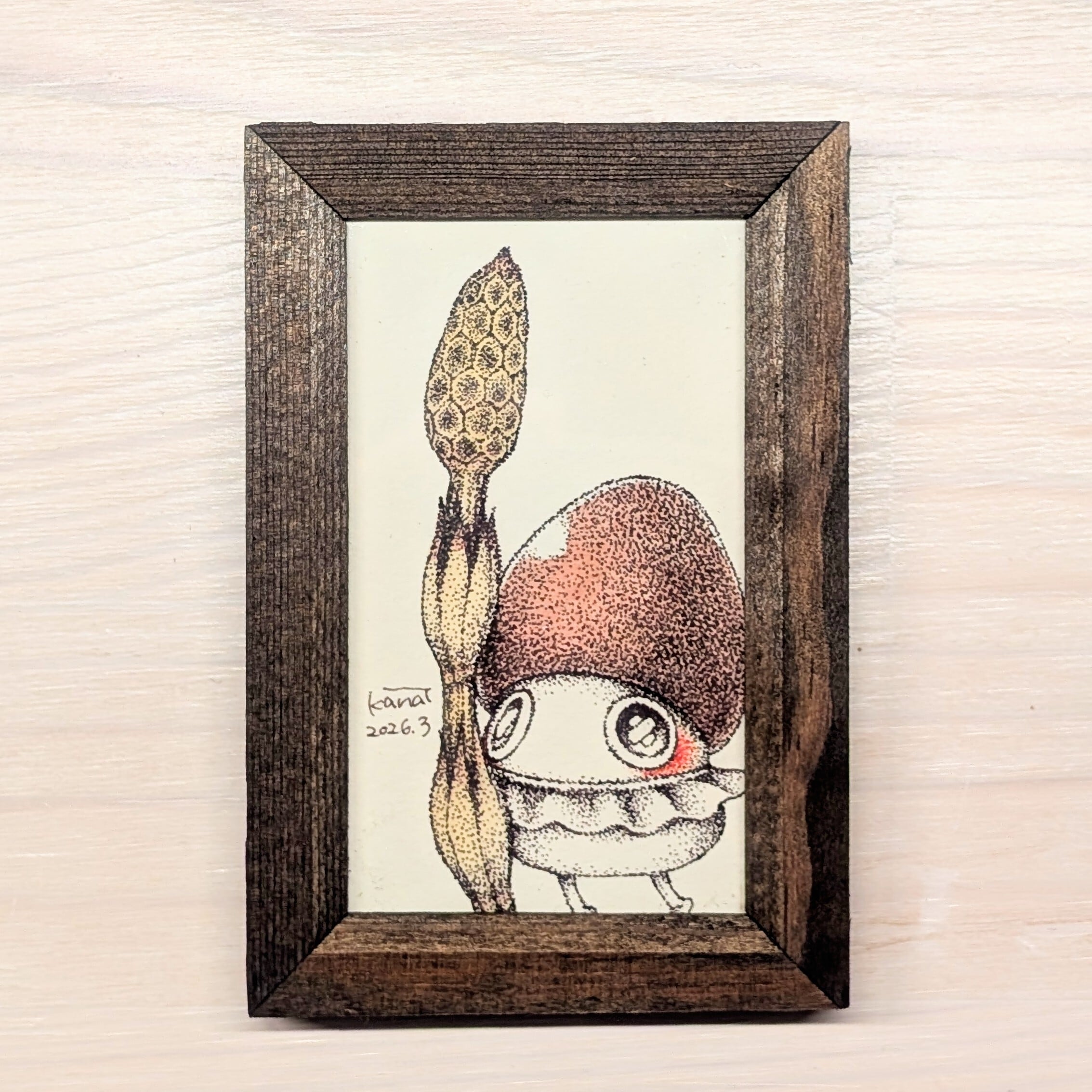 春の声にそっと寄り添って サイズ:10.7cm×7.7cm(額込み) ※写真と実際の商品とでは、閲覧いただく媒体などにより色味に若干の違いがございますので、予めご了承ください。