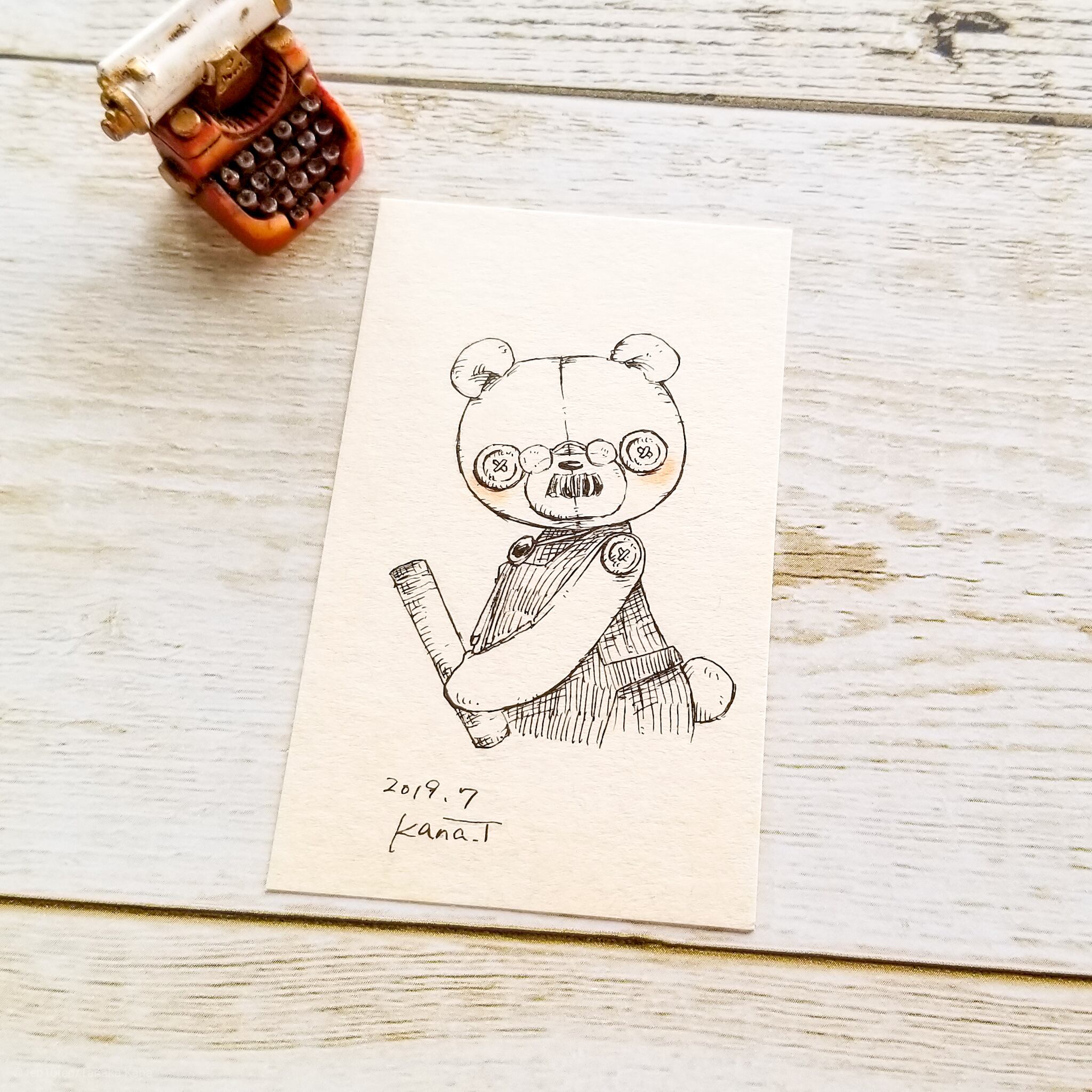 名刺サイズのミニ原画です。 オリジナルキャラクターのぬいぐる'sには様々な動物がいます。 今回はくま店長です。 森の奥にある本屋で店長をしているダンディで落ち着いた雰囲気のくま店長。 帽子屋とのティータイムが好き。 サイズ:55mm×91mm ケース:硬質塩化ビニル樹脂 ※送料込みの商品です。普通郵便にてお届けします。