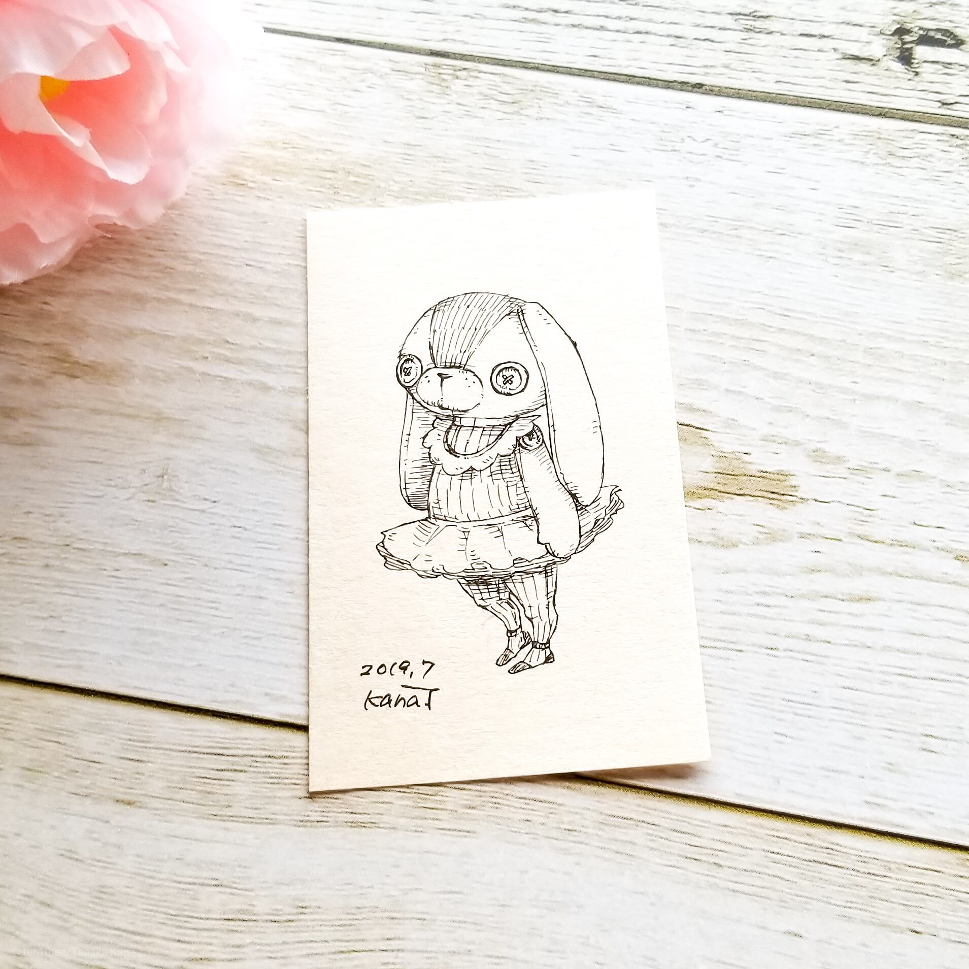 名刺サイズのミニ原画です。 オリジナルキャラクターのぬいぐる'sには様々な動物がいます。 今回は踊り子うさぎ。 ダンサーのうさぎの子。 赤い靴がお気に入りで、スペア用に10足は常にストックしている。 サイズ:55mm×91mm ケース:硬質塩化ビニル樹脂 ※送料込みの商品です。普通郵便にてお届けします。