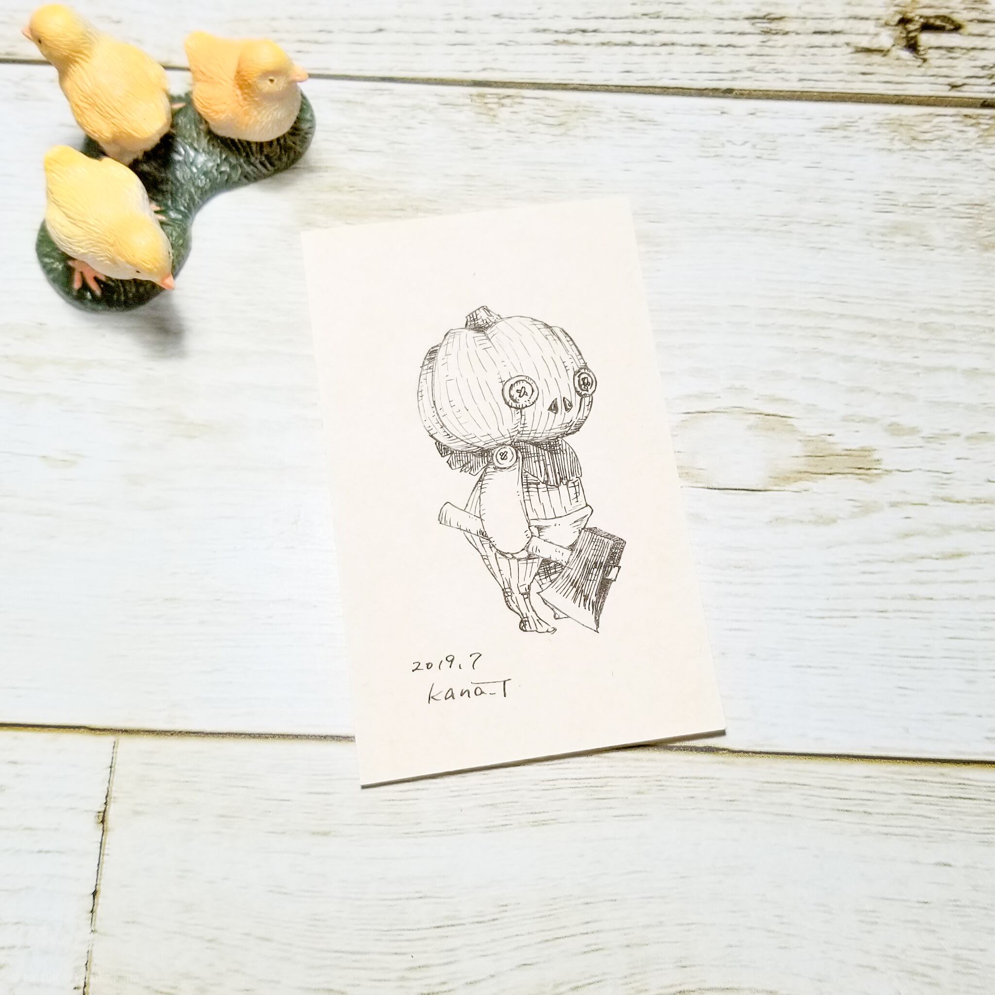 名刺サイズのミニ原画です。 オリジナルキャラクターのぬいぐる'sには様々な動物がいます。 今回は新キャラのかぼちゃの子。 ハロウィンの時期に現れては、どくろの子と一緒にいたずらをしていく。 森で木こりをして暮らしている。 サイズ:55mm×91mm ケース:硬質塩化ビニル樹脂 ※送料込みの商品です。普通郵便にてお届けします。