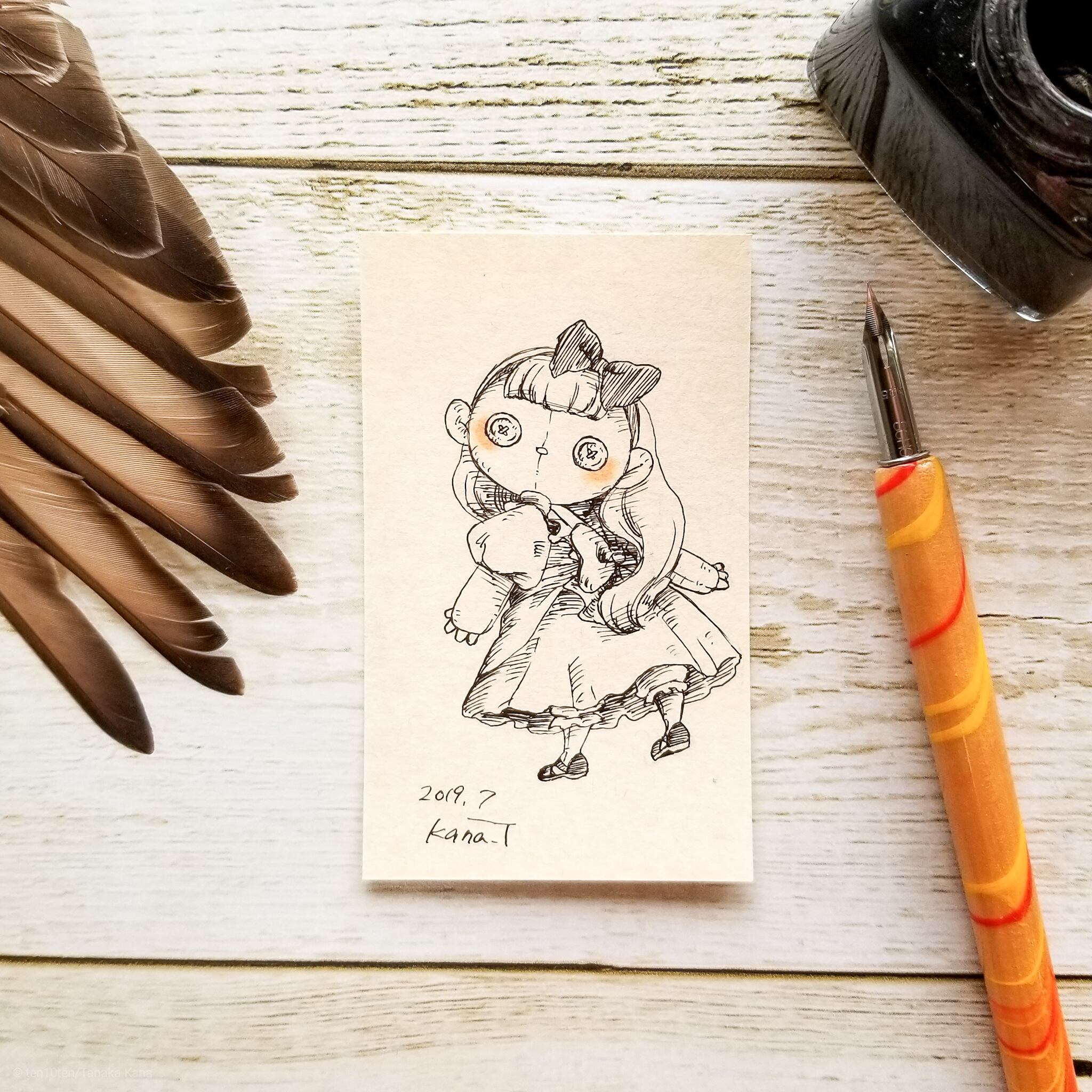 名刺サイズのミニ原画です。 オリジナルキャラクターのぬいぐる'sには様々な動物がいます。 今回は不思議の国のアリスシリーズからアリス。 好奇心旺盛な女の子。 サイズ:55mm×91mm ケース:硬質塩化ビニル樹脂 ※送料込みの商品です。普通郵便にてお届けします。