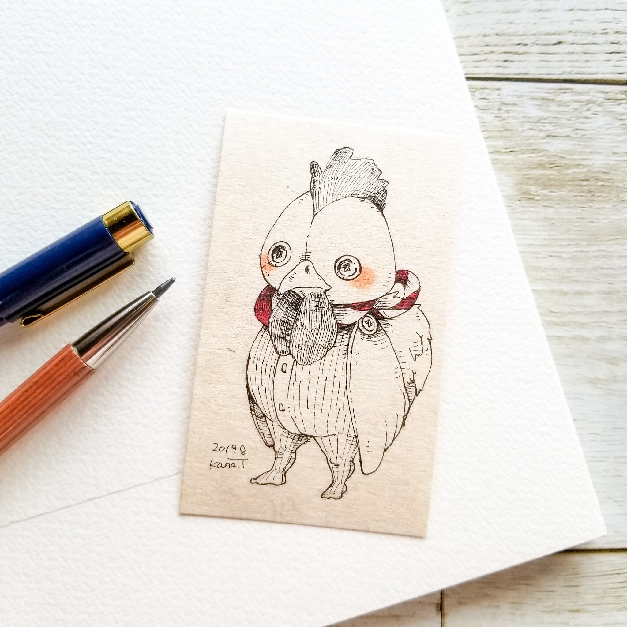 名刺サイズのミニ原画です。 オリジナルキャラクターのぬいぐる'sには様々な動物がいます。 今回は干支シリーズから酉年の子。 早起きが得意で食べ歩ことが大好き。 素晴らしいチキンレッグの持ち主。 サイズ:55mm×91mm ケース:硬質塩化ビニル樹脂 ※送料込みの商品です。普通郵便にてお届けします。