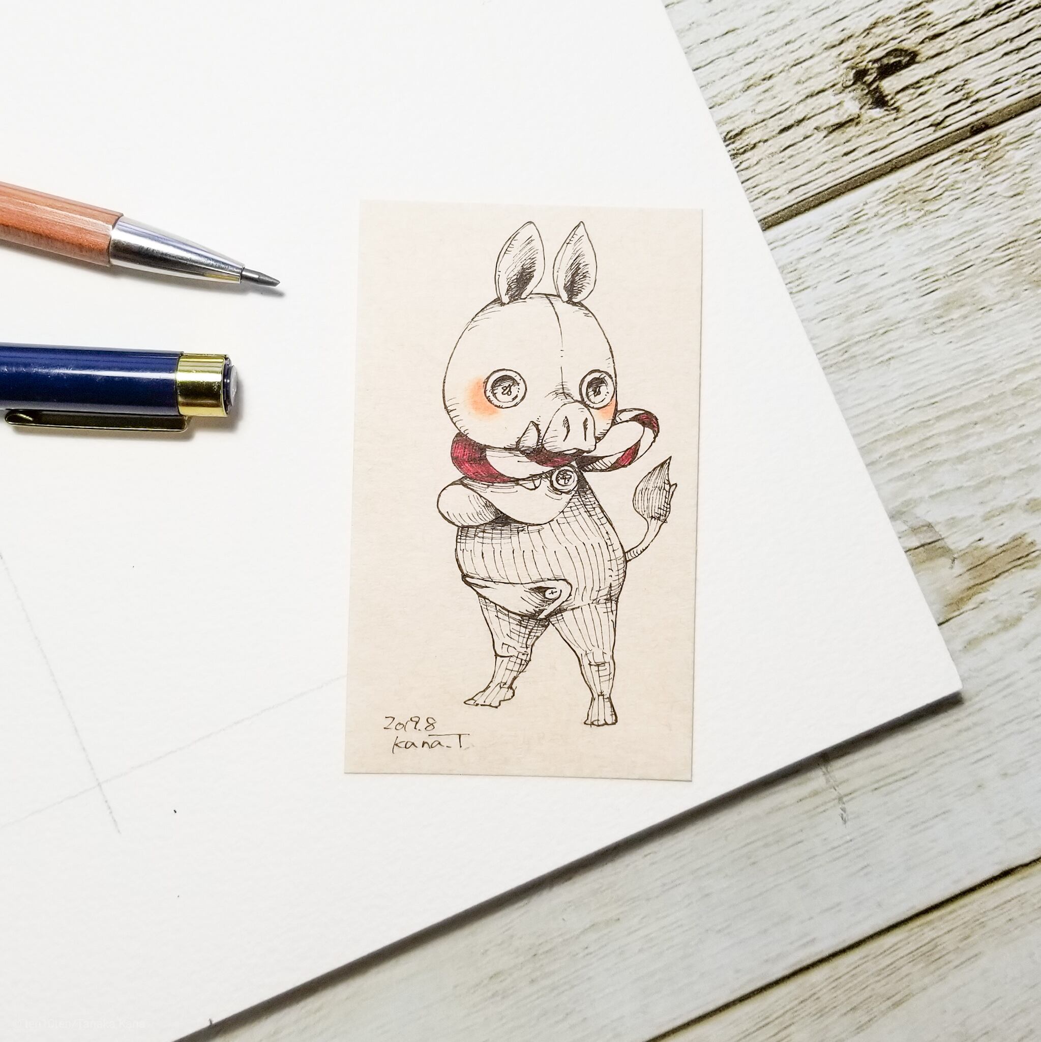 名刺サイズのミニ原画です。 オリジナルキャラクターのぬいぐる'sには様々な動物がいます。 今回は干支シリーズから亥年の子。 猪突猛進の真っ直ぐな子。 りんごとさつまいもが大好きで、恐竜の子たちとよくりんご狩りに行く。 サイズ:55mm×91mm ケース:硬質塩化ビニル樹脂 ※送料込みの商品です。普通郵便にてお届けします。