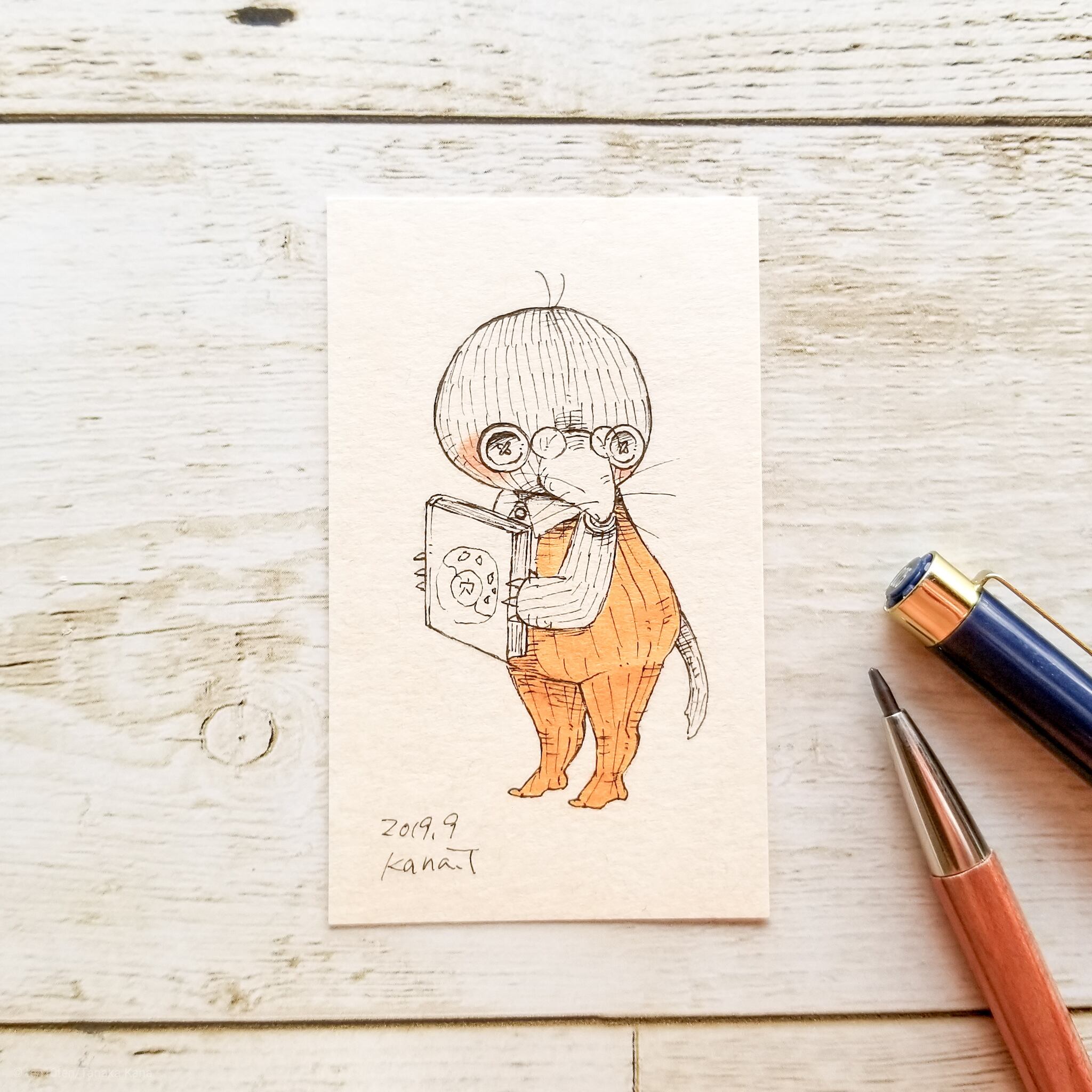 名刺サイズのミニ原画です。 オリジナルキャラクターのぬいぐる'sには様々な動物がいます。 今回はモグラの子。 本が好きで本屋さんの地下に住んでいる。 読み聞かせが得意だけど、心地良すぎて聞いてる人が眠ってしまうのが最近の悩み。 サイズ:55mm×91mm ケース:硬質塩化ビニル樹脂 ※送料込みの商品です。普通郵便にてお届けします。