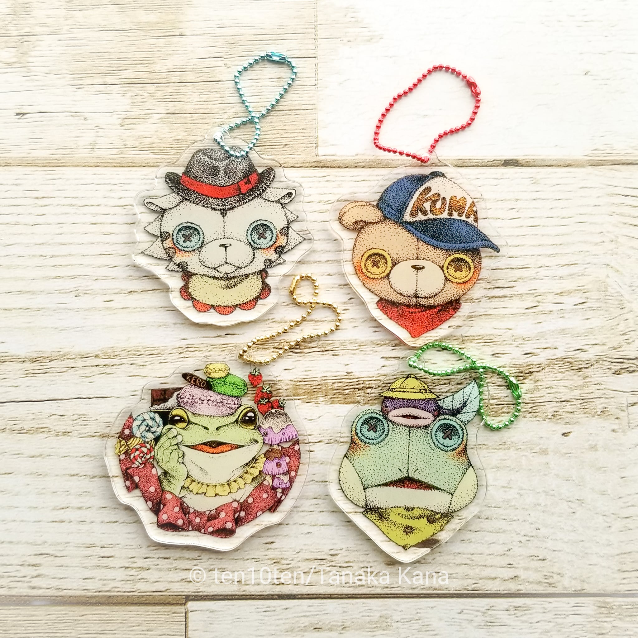 ぬいぐる'sとSweetfrogが、かわいいアクリルキーホルダーになりました♪ 両面プリントで、それぞれのカラーに合わせたボールチェーン付です。 [仕様] サイズ:約5cm四方 厚み:約3mm [ご注意] 商品写真と実際の商品とでは色味に多少の差がございます。 これは撮影環境や、画像を閲覧する媒体により異なりますので予めご留意くださいませ。
