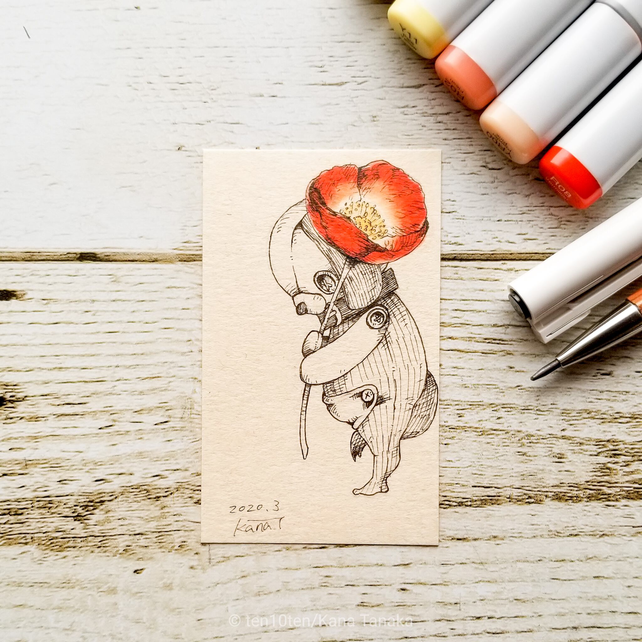 名刺サイズのミニ原画です。 オリジナルキャラクターのぬいぐる'sには様々な生き物がいます。 今回はいぬの子とアイスランドポピー。 アイスランドポピーの花言葉は「安らぎ」「慰め」 サイズ:55mm×91mm ケース:硬質塩化ビニル樹脂 ※送料込みの商品です。普通郵便にてお届けします。