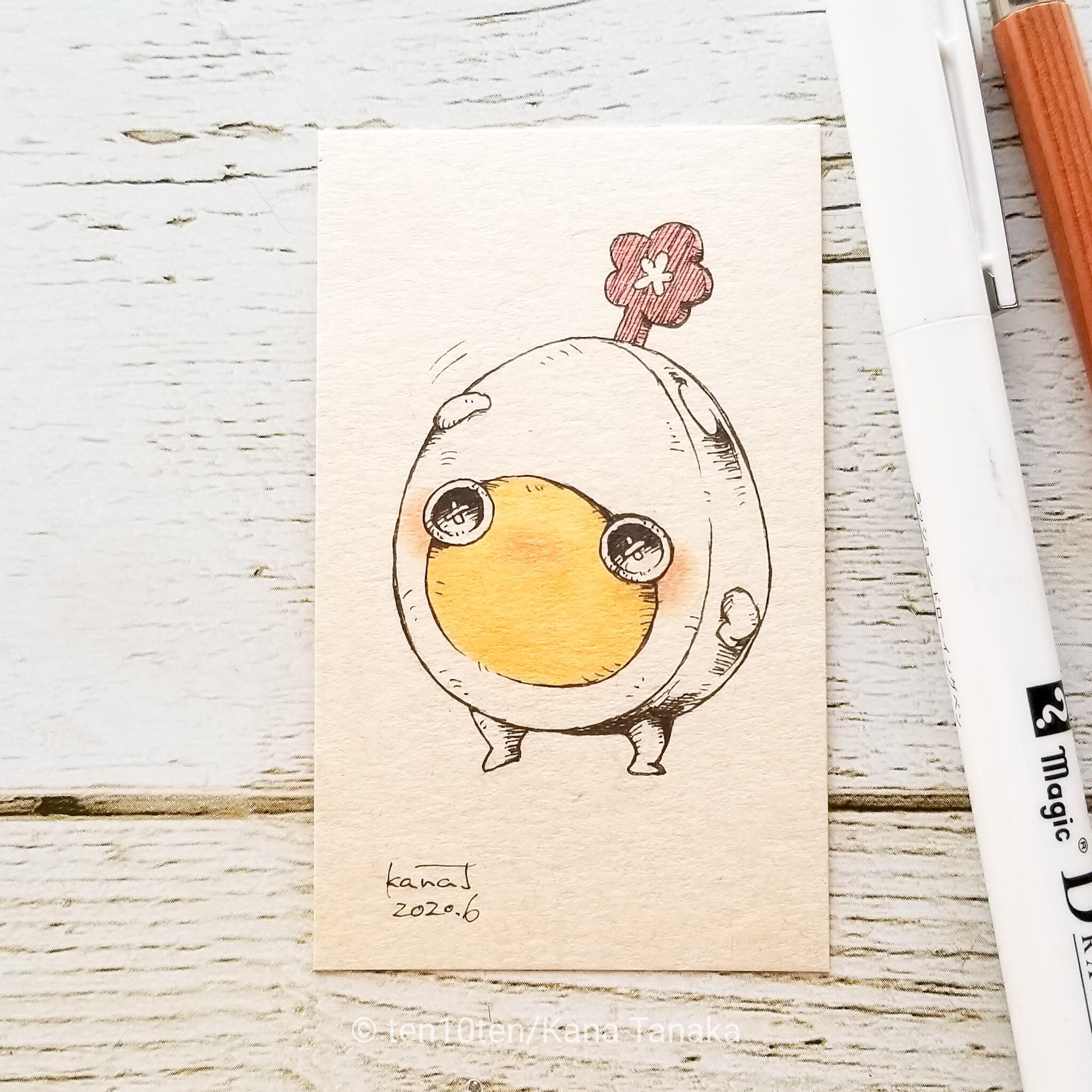 名刺サイズのドローイング作品です。 オリジナルキャラクターのぬいぐる'sには様々な生き物がいます。 今回はゆで卵の子。 硬めの茹で加減だけれど、硬すぎてボソボソはいただけない。 ほどよいしっとり感は柔軟運動から。 サイズ:55mm×91mm ケース:硬質塩化ビニル樹脂 ※送料込みの商品です。普通郵便にてお届けします。