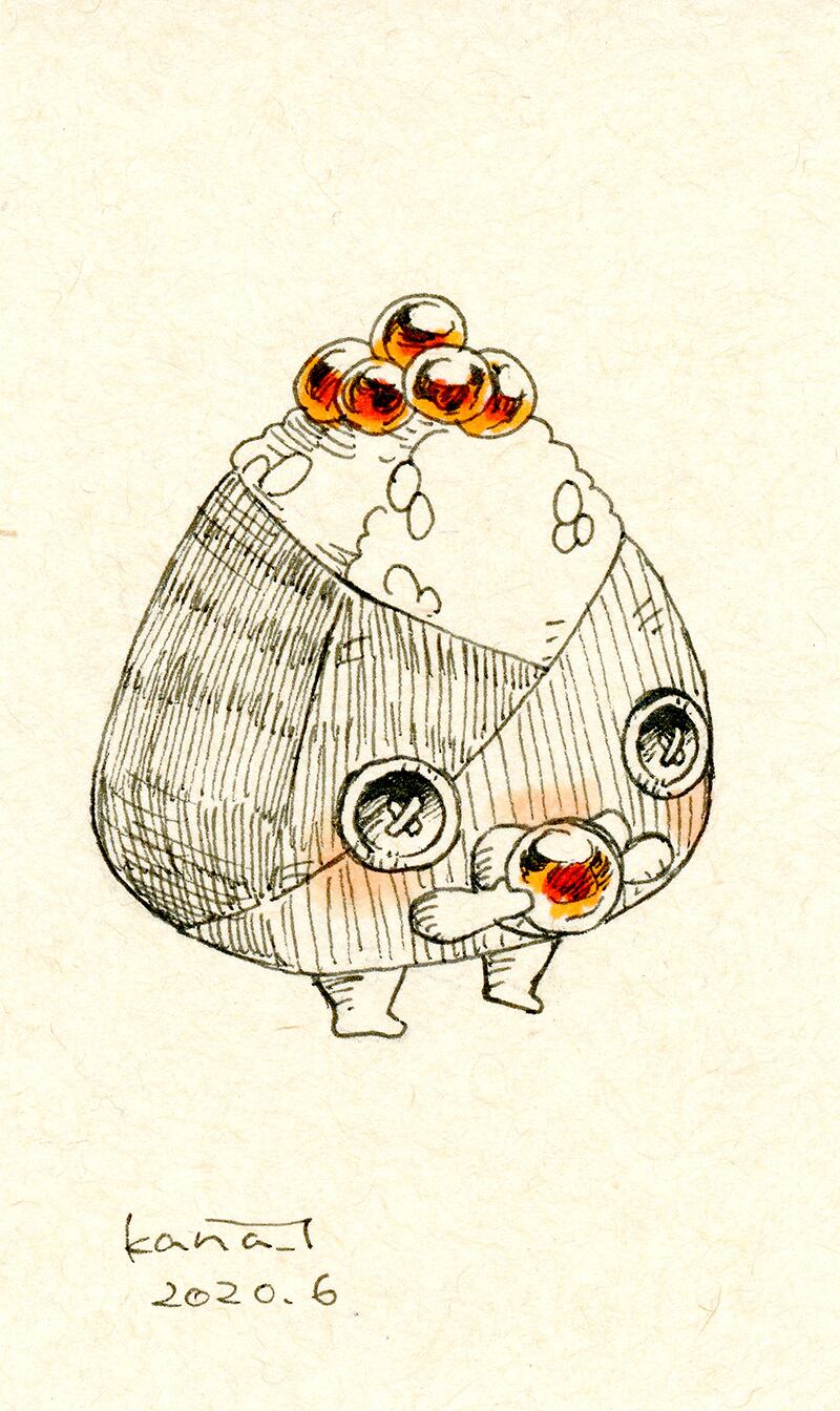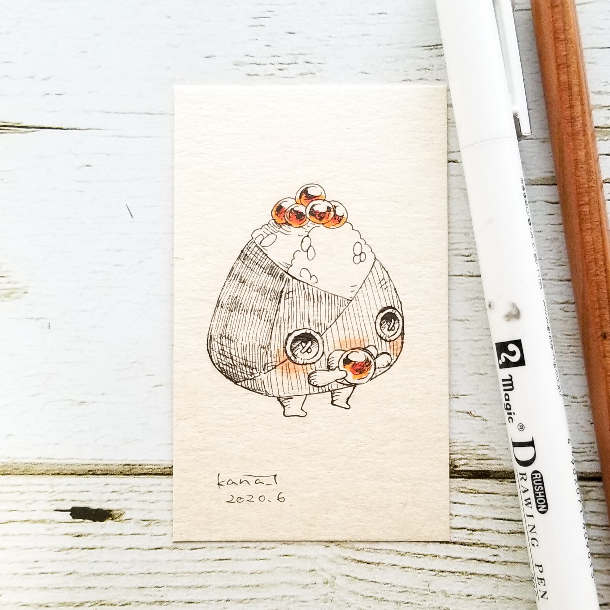 名刺サイズのドローイング作品です。 オリジナルキャラクターのぬいぐる'sには様々な生き物がいます。 今回はおむすびシリーズから、いくらむすびの子。 大好きないくらのおしゃぶりが手放せないかわいい子。 サイズ:55mm×91mm ケース:硬質塩化ビニル樹脂 ※送料込みの商品です。普通郵便にてお届けします。