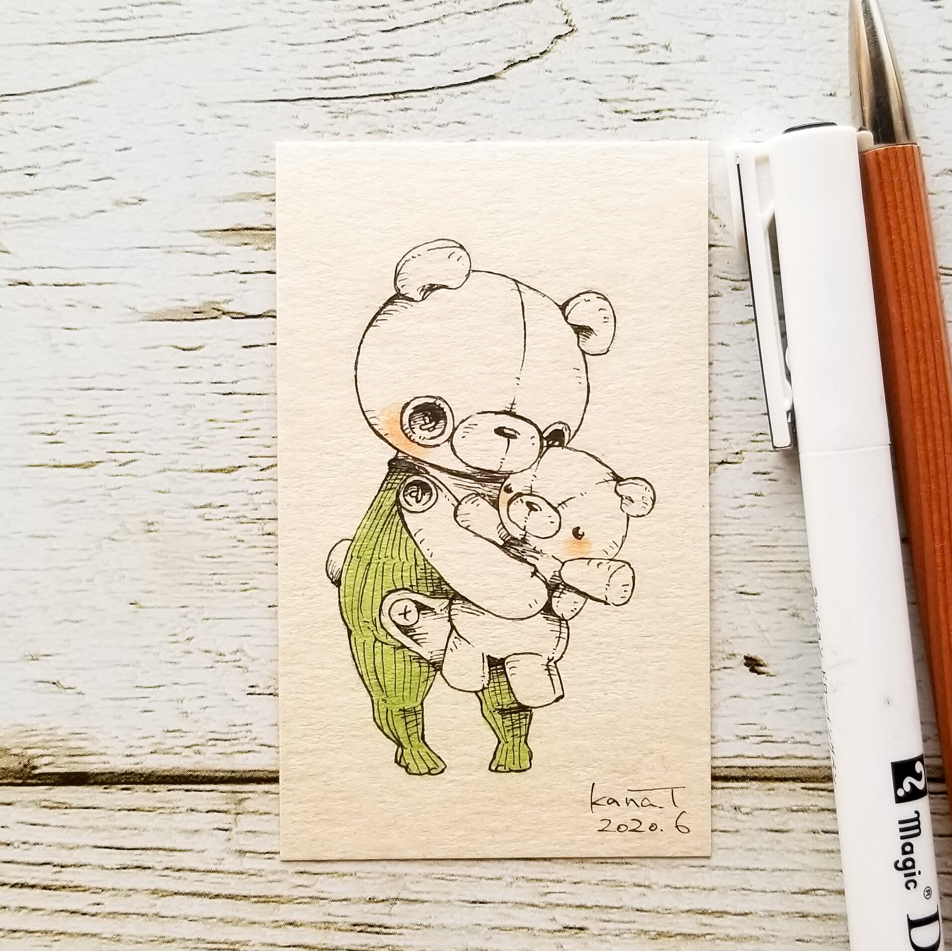 名刺サイズのミニ原画です。 オリジナルキャラクターのぬいぐる'sには様々な動物がいます。 今回は弟くまの子。 くまの子の弟。 僕はチャックのお兄ちゃん。 サイズ:55mm×91mm ケース:硬質塩化ビニル樹脂 ※送料込みの商品です。普通郵便にてお届けします。