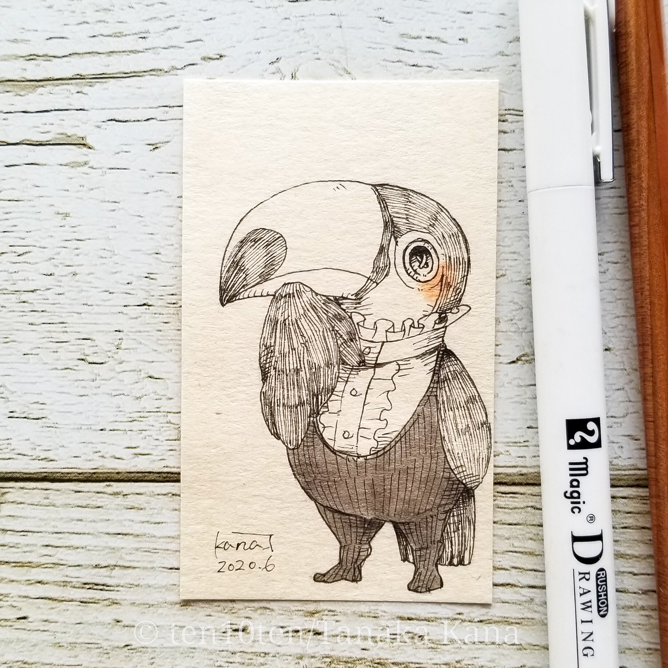 名刺サイズのミニ原画です。 オリジナルキャラクターのぬいぐる'sには様々な動物がいます。 今回はのオオハシの子。 キリッとして見えて、いつもバナナのことを考えているのんびり屋さん。 サイズ:55mm×91mm ケース:硬質塩化ビニル樹脂 ※送料込みの商品です。普通郵便にてお届けします。