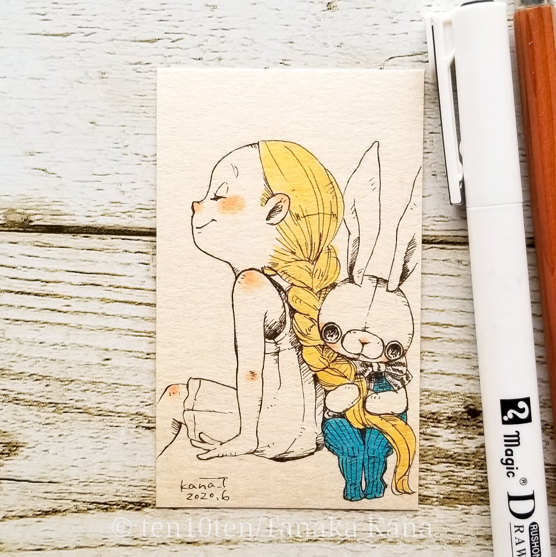 名刺サイズのドローイング作品です。 しあわせな日課 サイズ:55mm×91mm ケース:硬質塩化ビニル樹脂 ※送料込みの商品です。普通郵便にてお届けします。