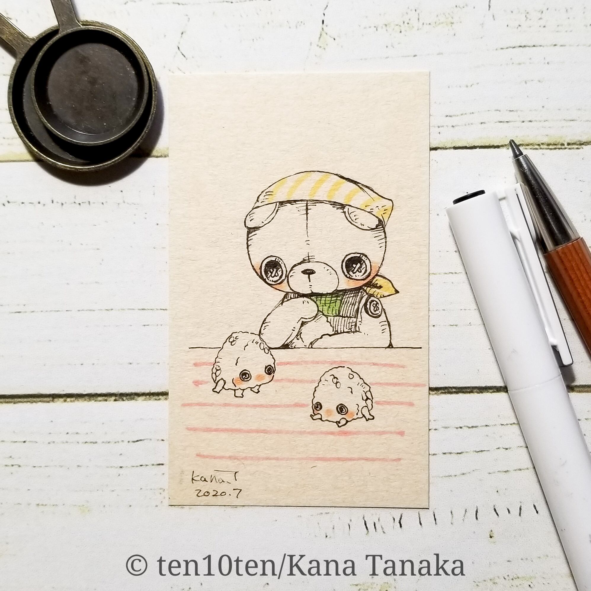 名刺サイズのミニ原画です。 オリジナルキャラクターのぬいぐる'sには様々な生き物がいます。 今回はおむすびの子と弟くまの子。 お料理好きな弟くまの子の得意料理はふんわりおむすび。 おむすびの子たちは美味しく食べてもらうのが大好き。 サイズ:55mm×91mm ケース:硬質塩化ビニル樹脂 ※送料込みの商品です。普通郵便にてお届けします。