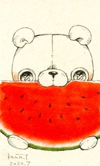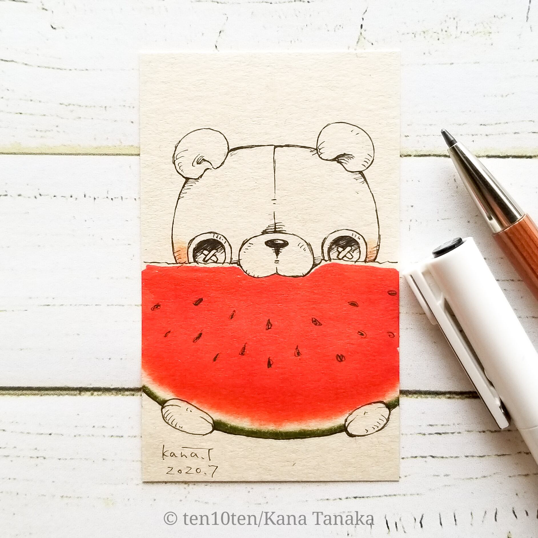 名刺サイズのミニ原画です。 オリジナルキャラクターのぬいぐる'sと巡る今日はなんの日。 今回はスイカの日。 しっかり水分補給。 サイズ:55mm×91mm ケース:硬質塩化ビニル樹脂 ※送料込みの商品です。普通郵便にてお届けします。