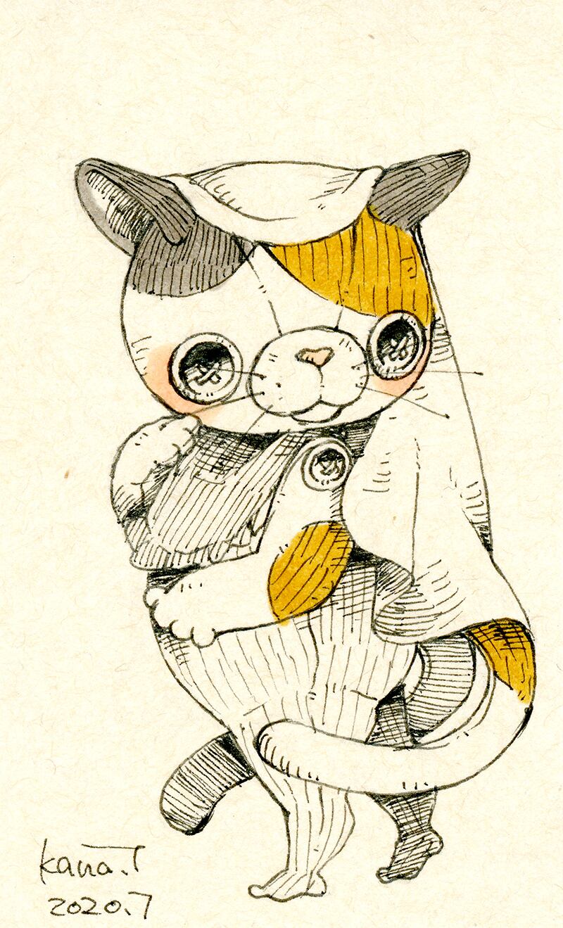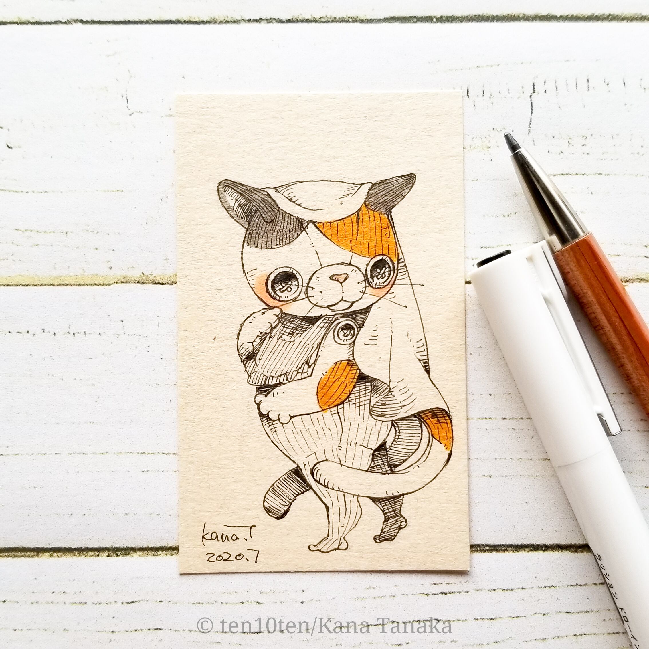 名刺サイズのミニ原画です。 オリジナルキャラクターのぬいぐる'sには様々な生き物がいます。 今回は妖怪シリーズから猫又の子。 優しい飼い主のもとで長生きした猫が化けた妖怪。 サイズ:55mm×91mm ケース:硬質塩化ビニル樹脂 ※送料込みの商品です。普通郵便にてお届けします。