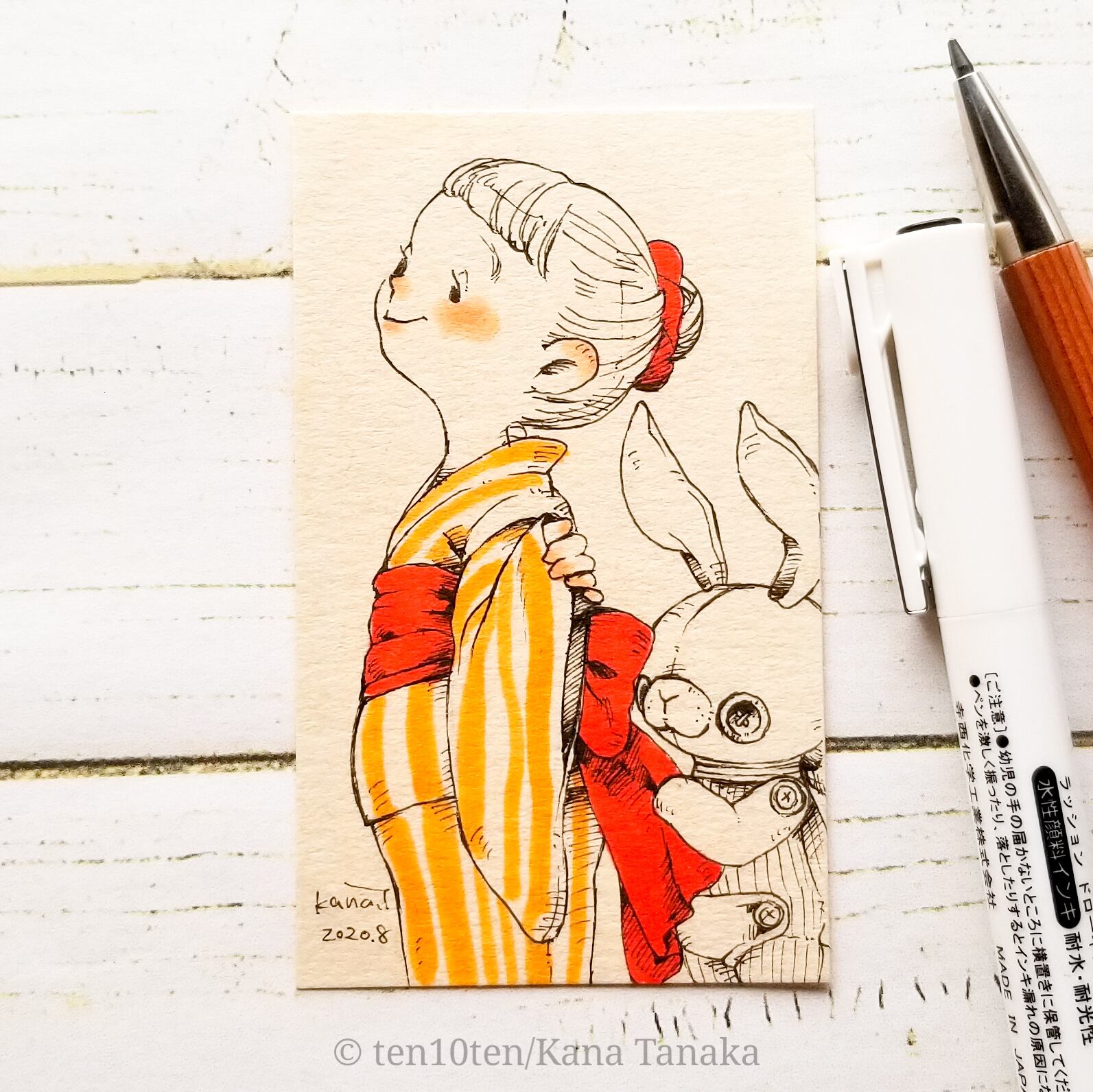 名刺サイズのミニ原画です。 オリジナルキャラクターのぬいぐる'sと巡る今日はなんの日。 今回は浴衣の日。 初めてのおめかしは念入りに。 サイズ:55mm×91mm ケース:硬質塩化ビニル樹脂 ※送料込みの商品です。普通郵便にてお届けします。