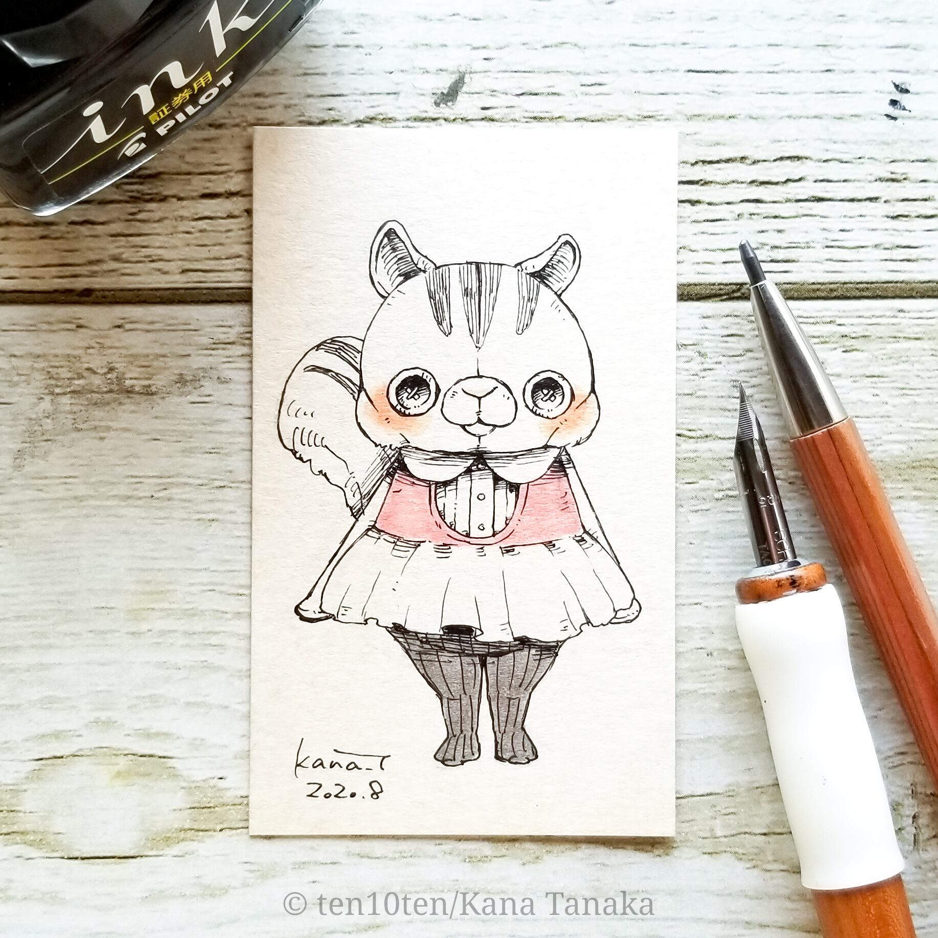 名刺サイズのドローイング作品です。 オリジナルキャラクターのぬいぐる'sには様々な生き物がいます。 今回はシマリスの子。 おしゃれ好きでおしゃまさん。 新しいレギンスがほしいお年頃。 サイズ:55mm×91mm ケース:硬質塩化ビニル樹脂 ※送料込みの商品です。普通郵便にてお届けします。