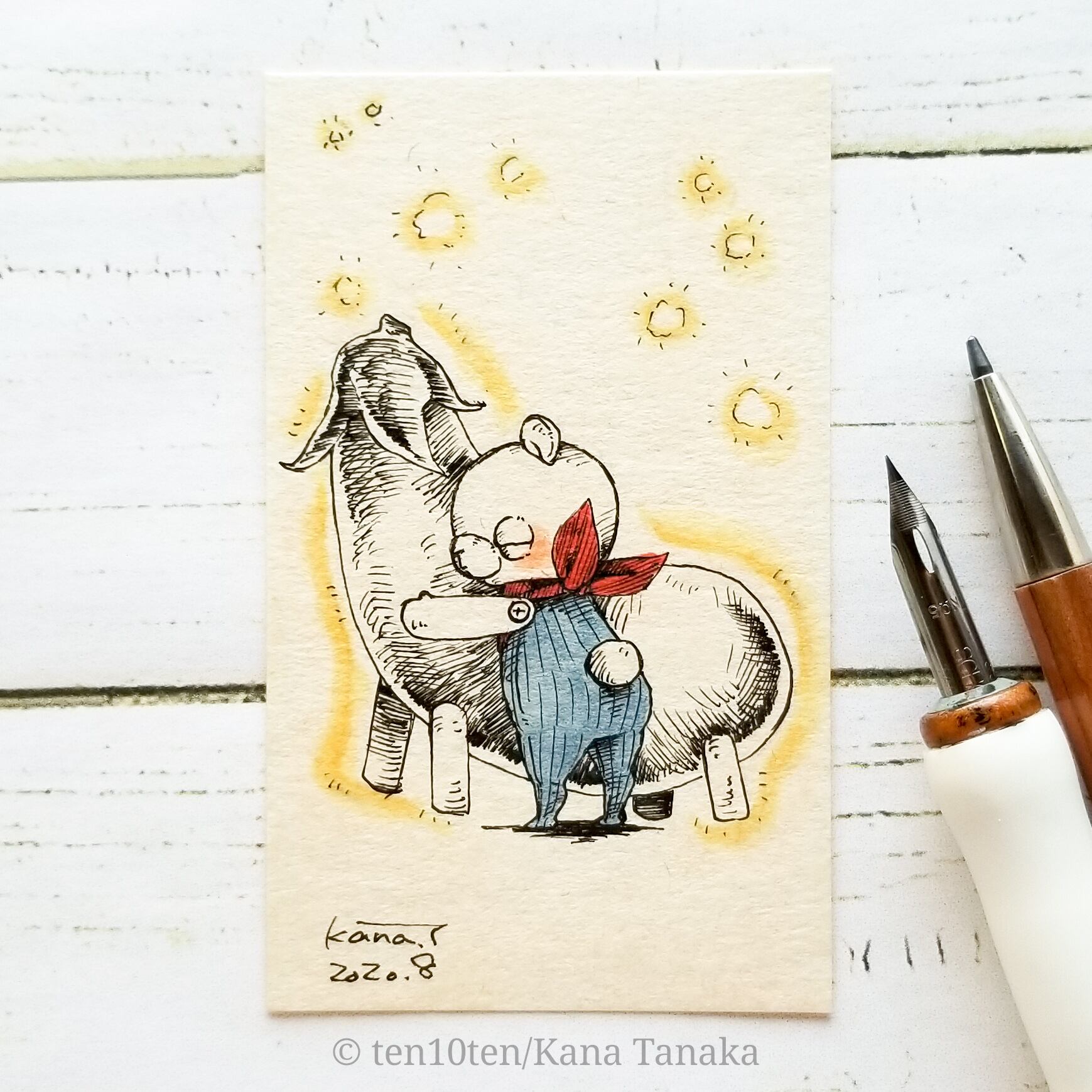 名刺サイズのドローイング作品です。 オリジナルキャラクターのぬいぐる'sと巡る今日はなんの日。 今回は月遅れ盆送り火の日。 また会いに来てね。 サイズ:55mm×91mm ケース:硬質塩化ビニル樹脂 ※送料込みの商品です。普通郵便にてお届けします。