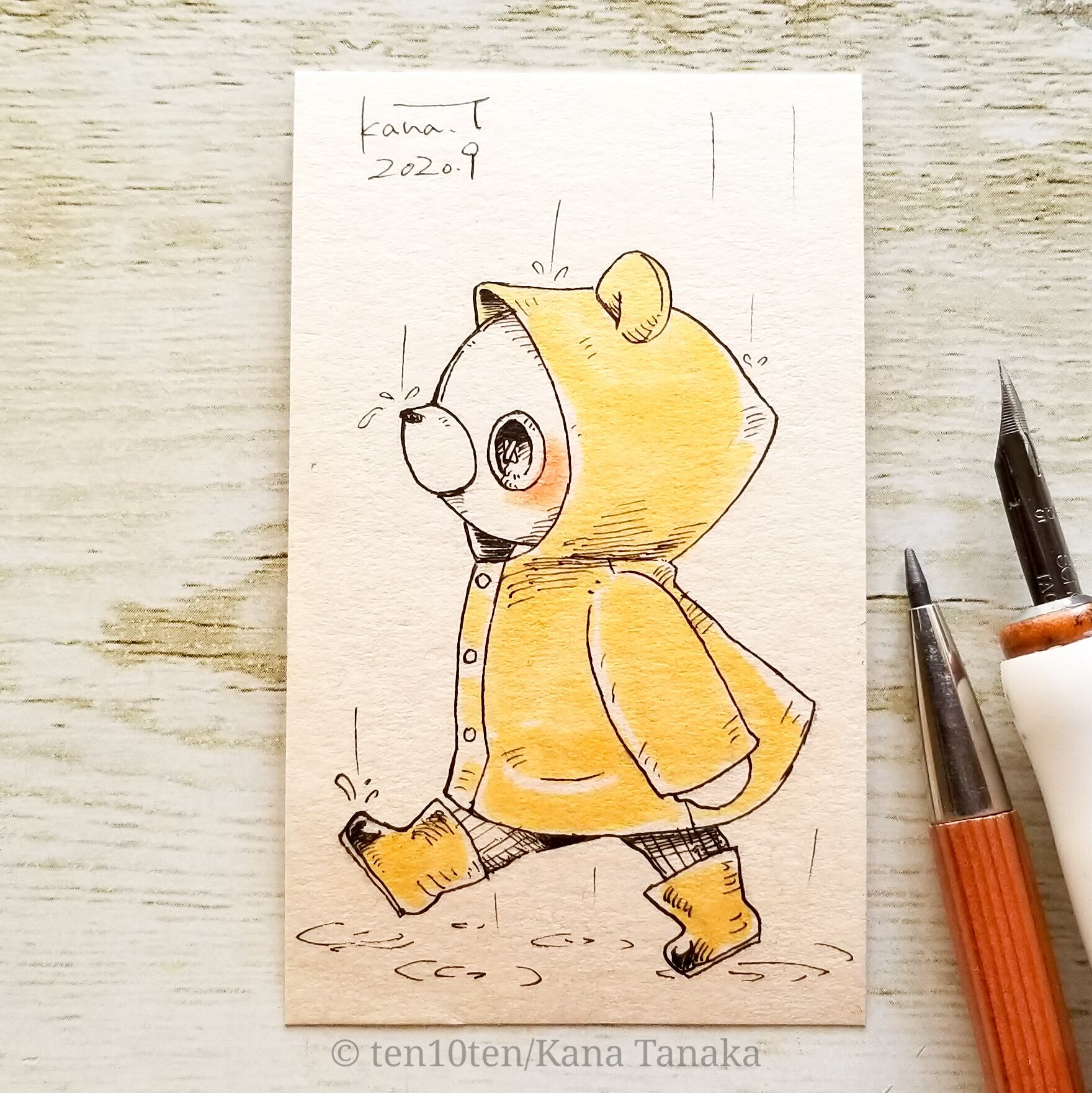 名刺サイズのドローイング作品です。 オリジナルキャラクターのぬいぐる'sには様々な生き物がいます。 今回はくまの子。 雨の日だってどこへでも行ける。 サイズ:55mm×91mm ケース:硬質塩化ビニル樹脂 ※送料込みの商品です。普通郵便にてお届けします。