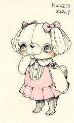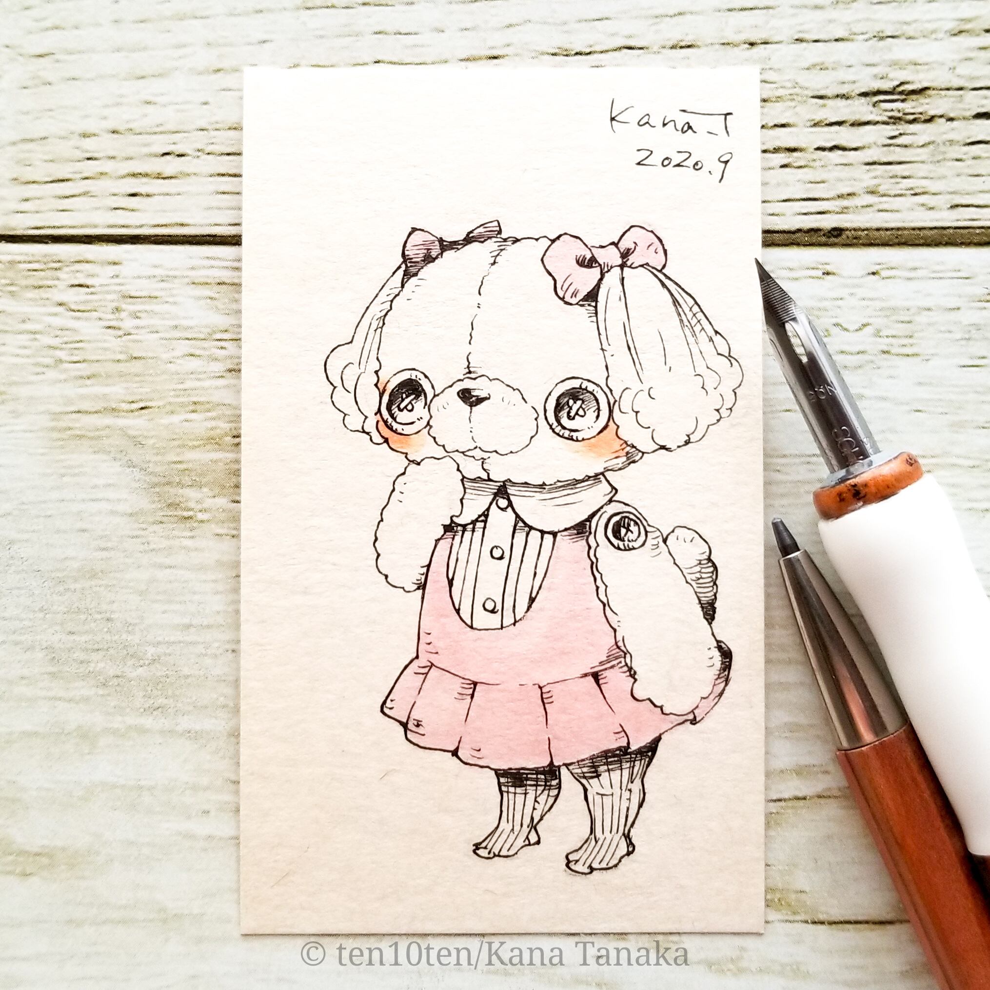 名刺サイズのドローイング作品です。 オリジナルキャラクターのぬいぐる'sには様々な生き物がいます。 今回はトイプードルの子。 お洒落好きな女の子で、シマリスの子とはレギンス仲間。 ピンクのワンピースがお気に入り。 サイズ:55mm×91mm ケース:硬質塩化ビニル樹脂 ※送料込みの商品です。普通郵便にてお届けします。