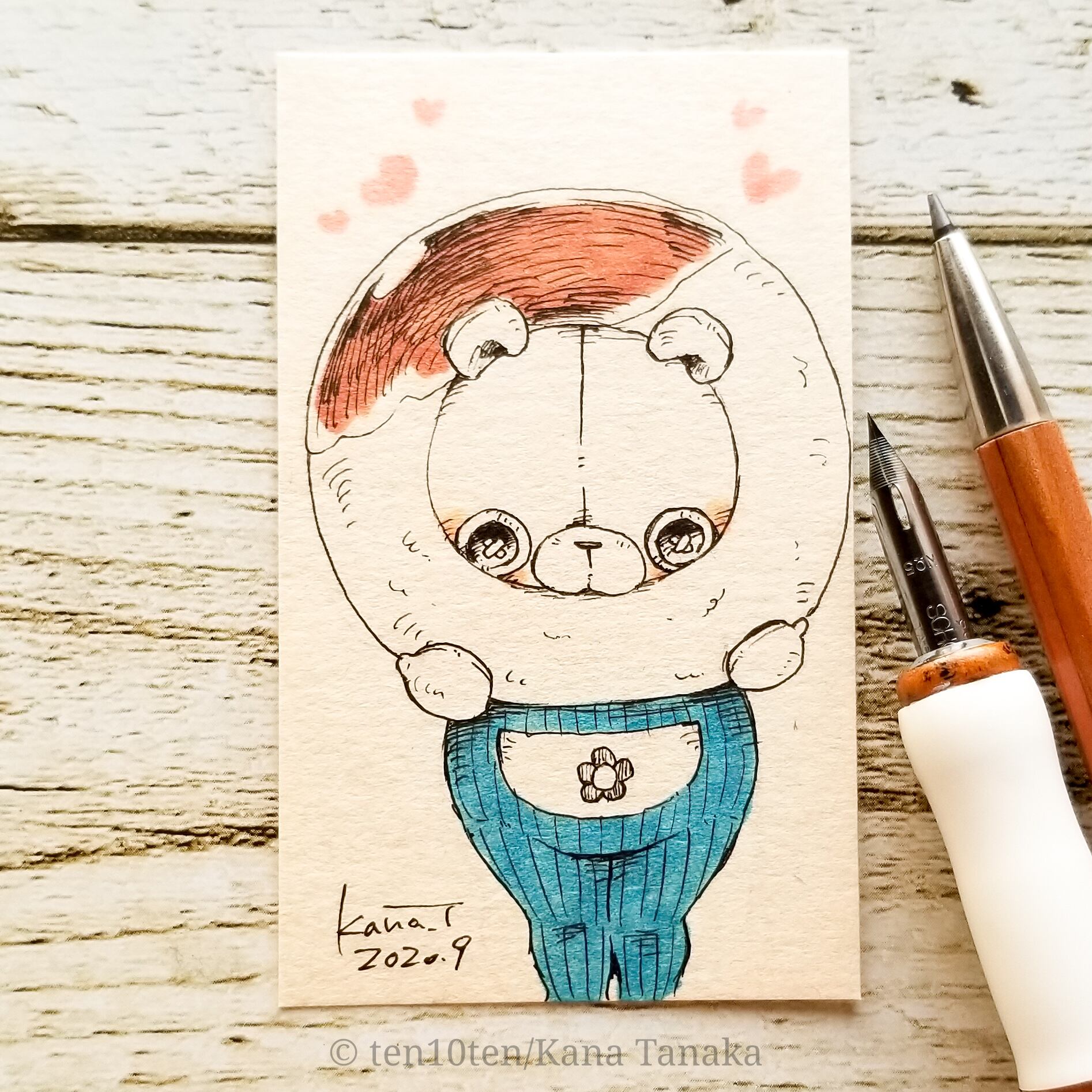 名刺サイズのドローイング作品です。 オリジナルキャラクターのぬいぐる'sには様々な生き物がいます。 今回はくまの子。 大きなドーナツをがぶりっ! サイズ:55mm×91mm ケース:硬質塩化ビニル樹脂 ※送料込みの商品です。普通郵便にてお届けします。