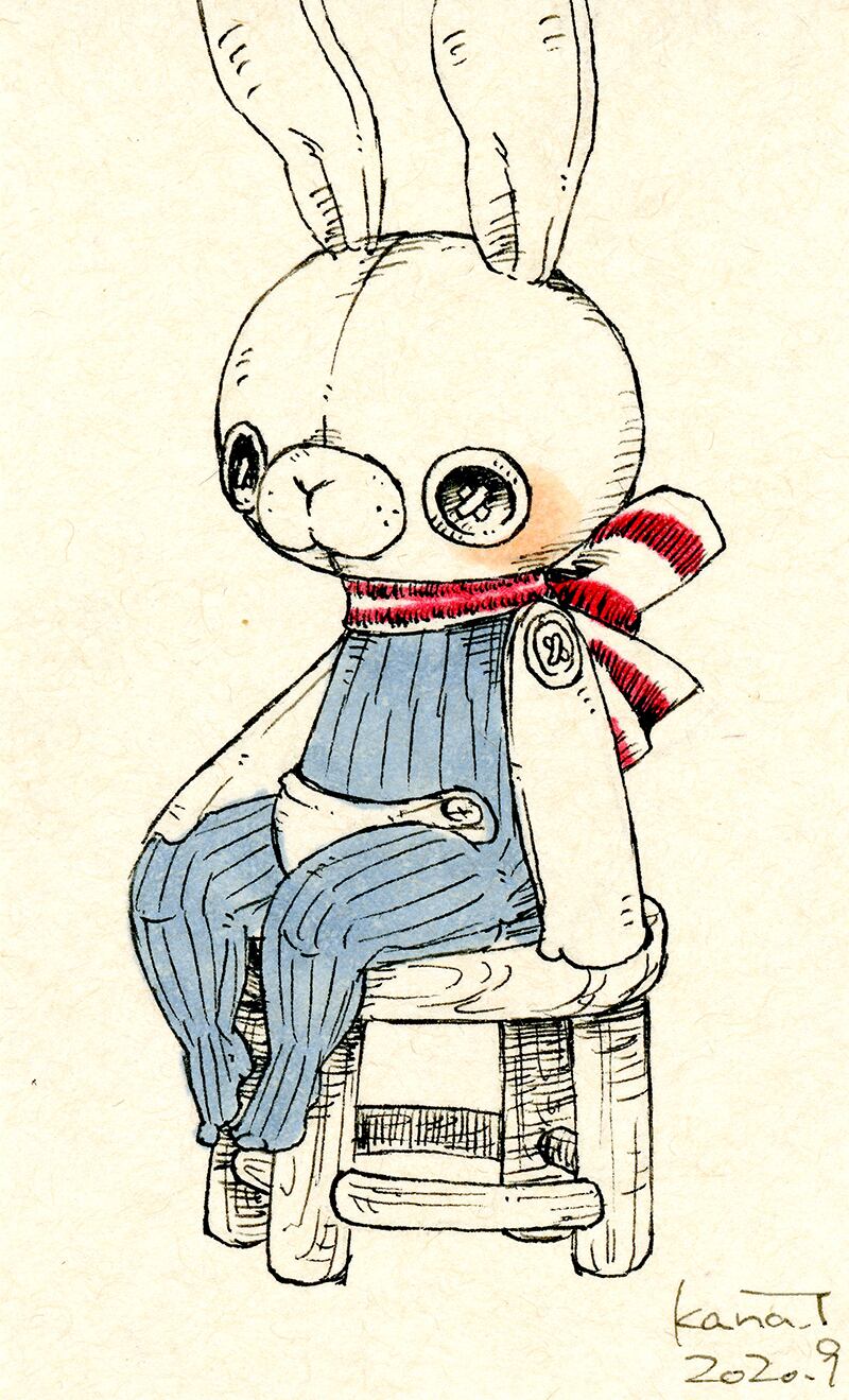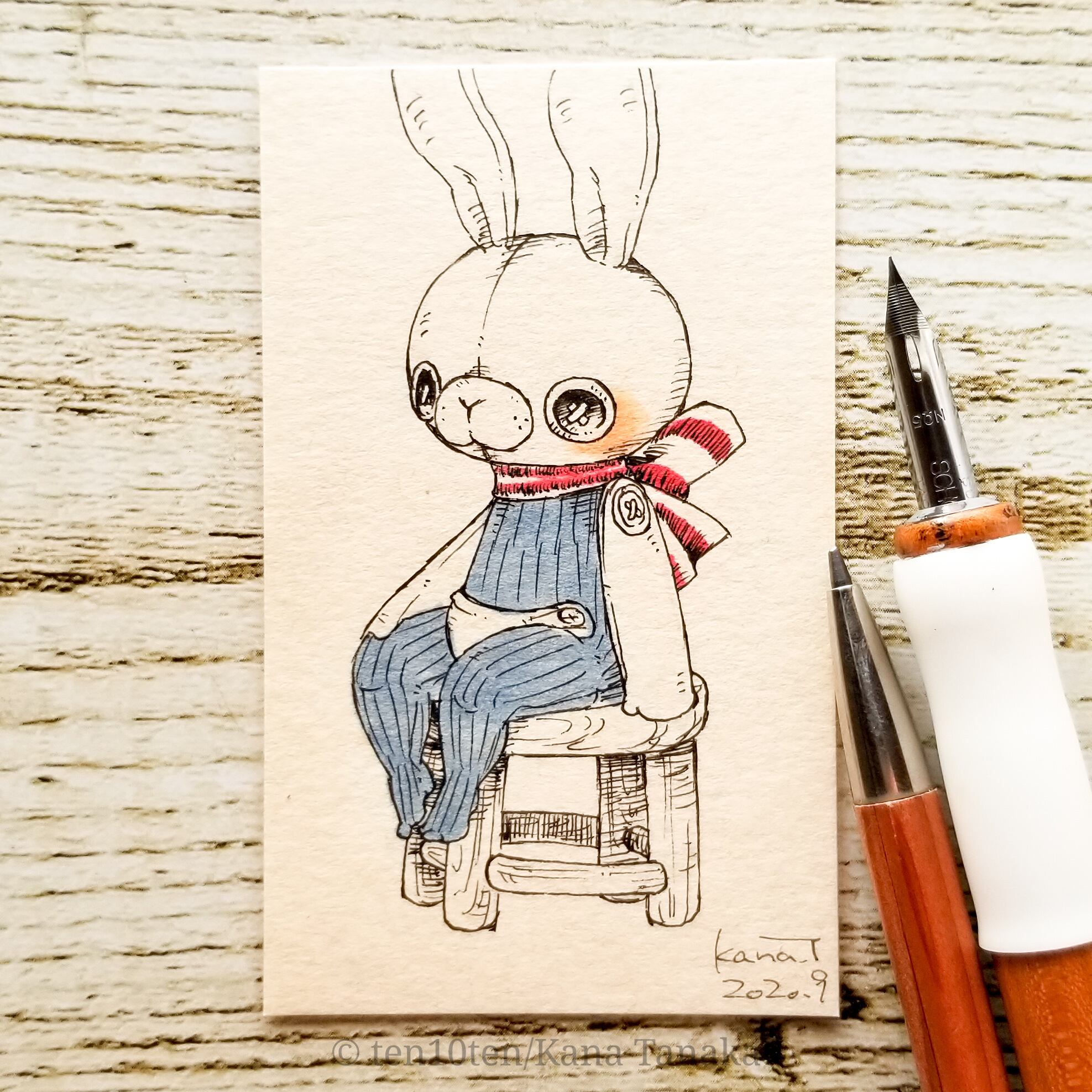 名刺サイズのドローイング作品です。 オリジナルキャラクターのぬいぐる'sには様々な生き物がいます。 今回はうさぎの子。 仕事のときに座る少し高めの椅子。 気持ちがシャンとするから好き。 サイズ:55mm×91mm ケース:硬質塩化ビニル樹脂 ※送料込みの商品です。普通郵便にてお届けします。