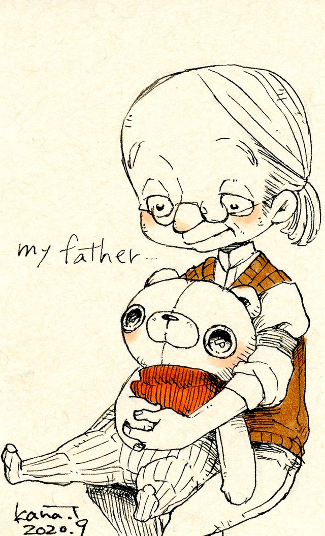 名刺サイズのドローイング作品です。 ぬいぐる'sたちはみんなこのおじいさんが作った子たちです。 色んな人たちの手に触れ、たくさんの人生を歩んで、そして何処かの森で静かに暮らしています。 サイズ:55mm×91mm ケース:硬質塩化ビニル樹脂 ※送料込みの商品です。普通郵便にてお届けします。