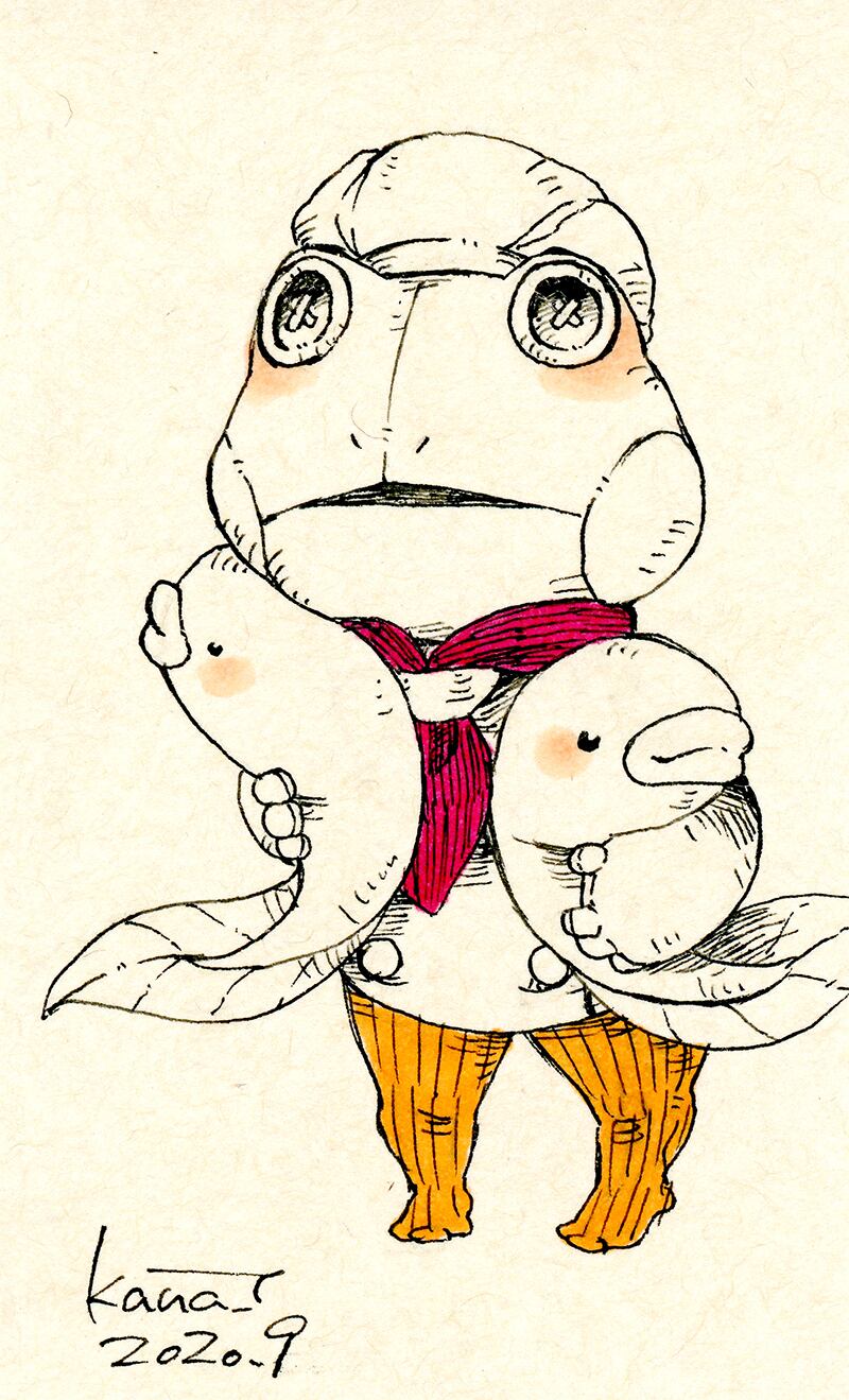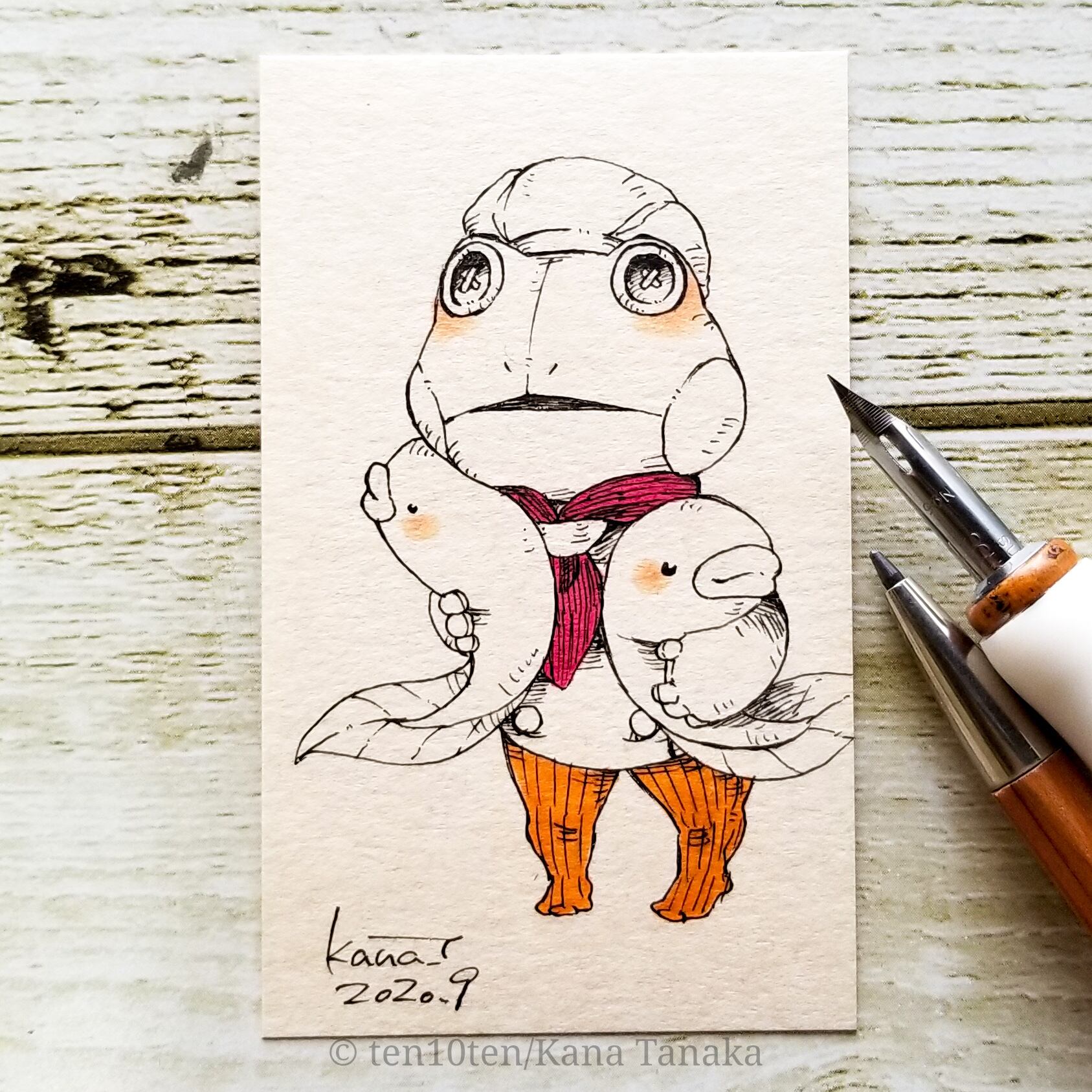 名刺サイズのドローイング作品です。 ぬいぐる'sには色んな生き物がいます。 今回はけろ太とオタマ。 パン屋さんに扮したけろ太。 朝の仕込に出かけます。 サイズ:55mm×91mm ケース:硬質塩化ビニル樹脂 ※送料込みの商品です。普通郵便にてお届けします。