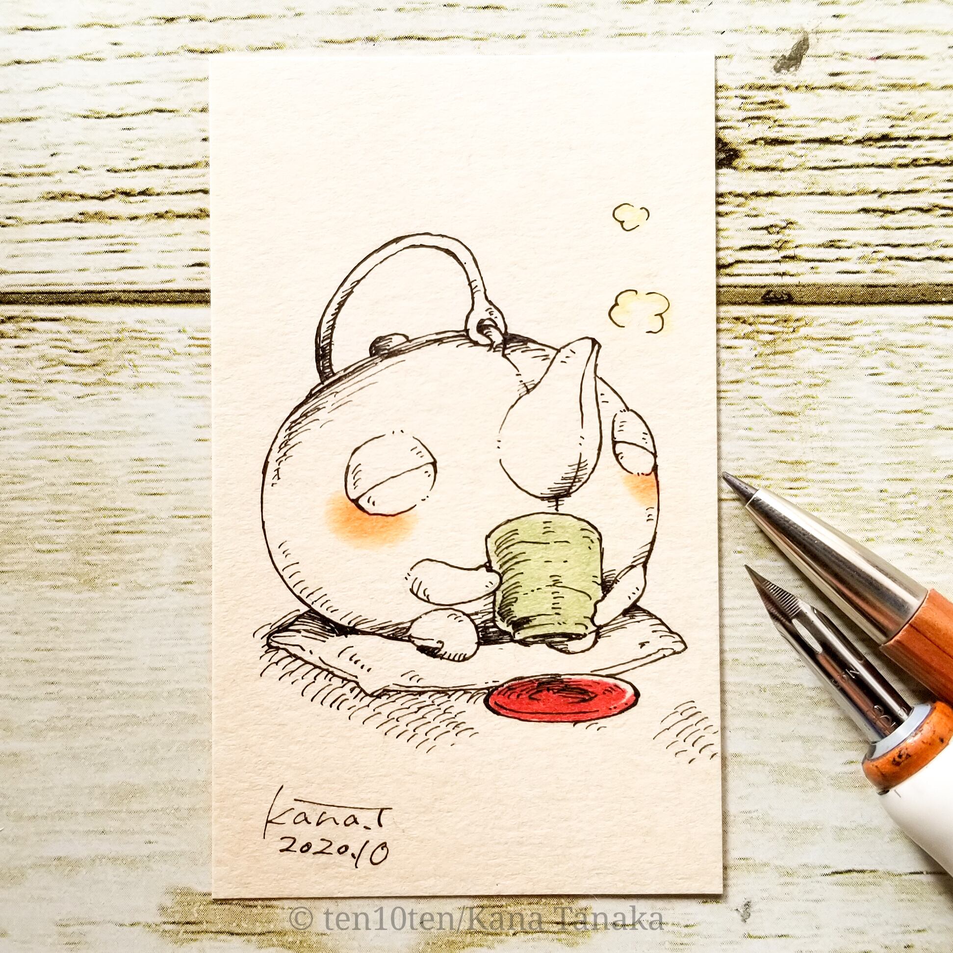 名刺サイズのドローイング作品です。 ぬいぐる’sには色々な生き物がいます。 今回は妖怪シリーズからヤカンヅルの子。 木にぶら下がっていない時は畳の上や縁側でまったりしています。 サイズ:55mm×91mm ケース:硬質塩化ビニル樹脂 ※送料込みの商品です。普通郵便にてお届けします。