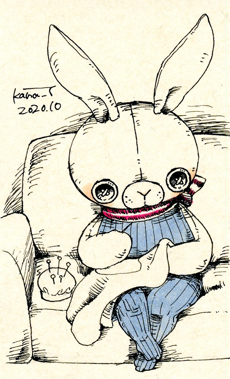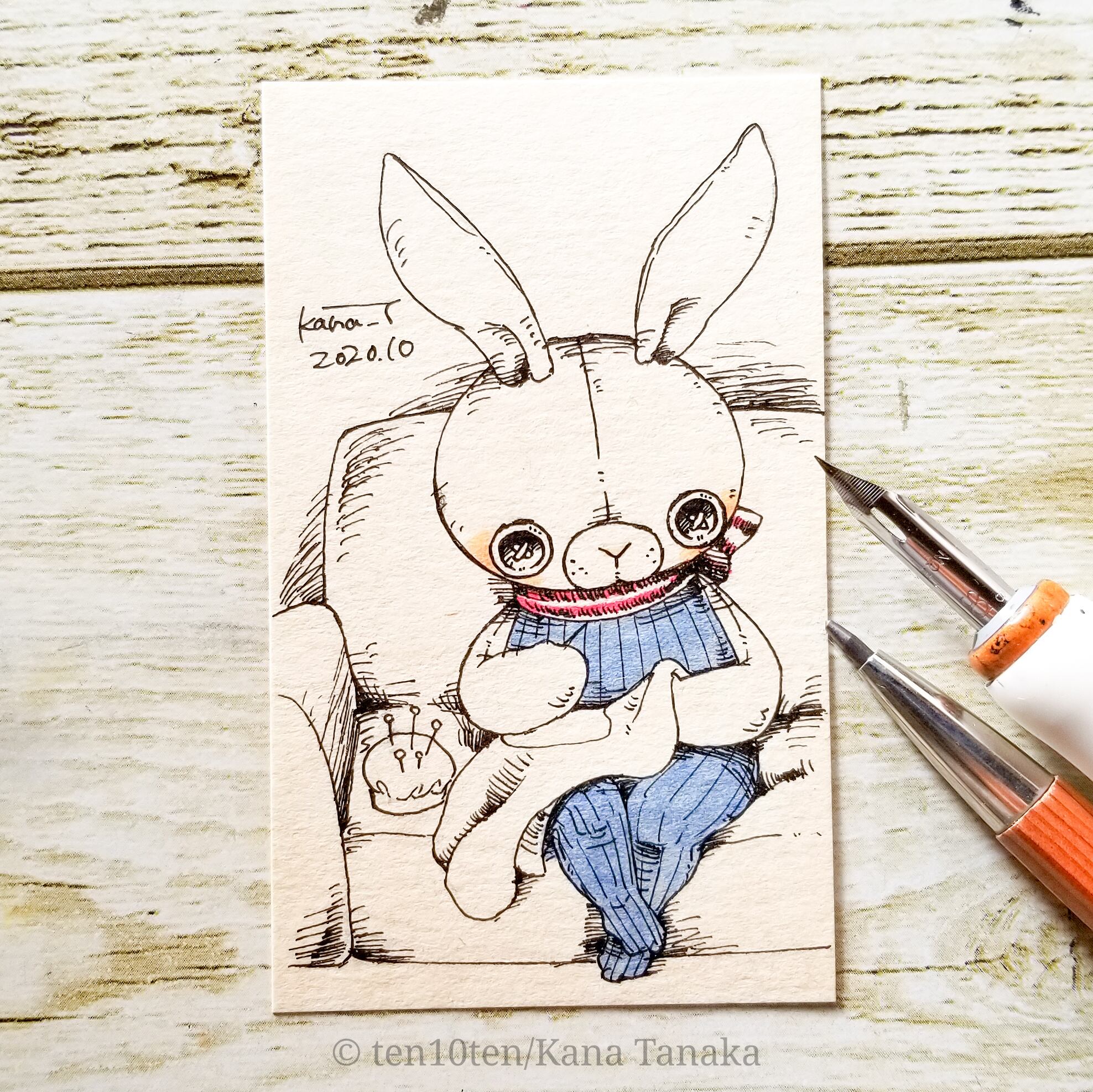 名刺サイズのドローイング作品です。 ぬいぐる’sには色々な生き物がいます。 今回はうさぎの子。 リボン屋を営むうさぎの子はお裁縫も好き。 サイズ:55mm×91mm ケース:硬質塩化ビニル樹脂 ※送料込みの商品です。普通郵便にてお届けします。