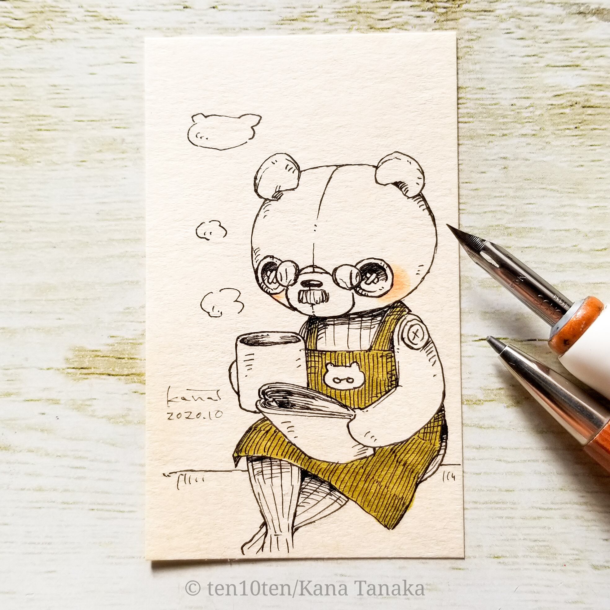 名刺サイズのドローイング作品です。 オリジナルキャラクターのぬいぐる'sには様々な生き物がいます。 今回は本屋の店長。 仕事の合間の一息。 じっくり座っては休めないけれど、この時間が癒やしの時間。 サイズ:55mm×91mm ケース:硬質塩化ビニル樹脂 ※送料込みの商品です。普通郵便にてお届けします。