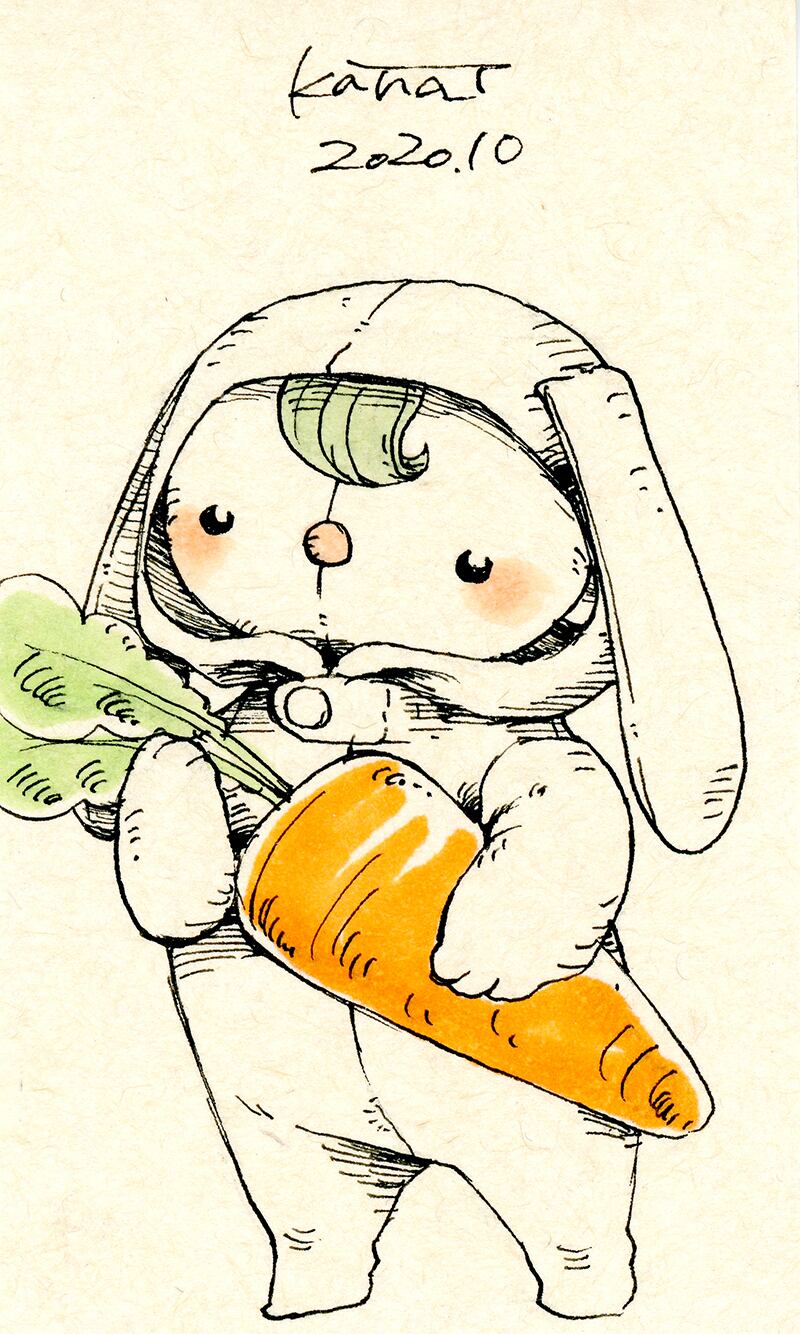 名刺サイズのドローイング作品です。 オリジナルキャラクターのぬいぐる'sには様々な生き物がいます。 今回は小人さん。 うさぎのロンパースを着て人参の収穫。 今日は人参パーティ。 サイズ:55mm×91mm ケース:硬質塩化ビニル樹脂 ※送料込みの商品です。普通郵便にてお届けします。
