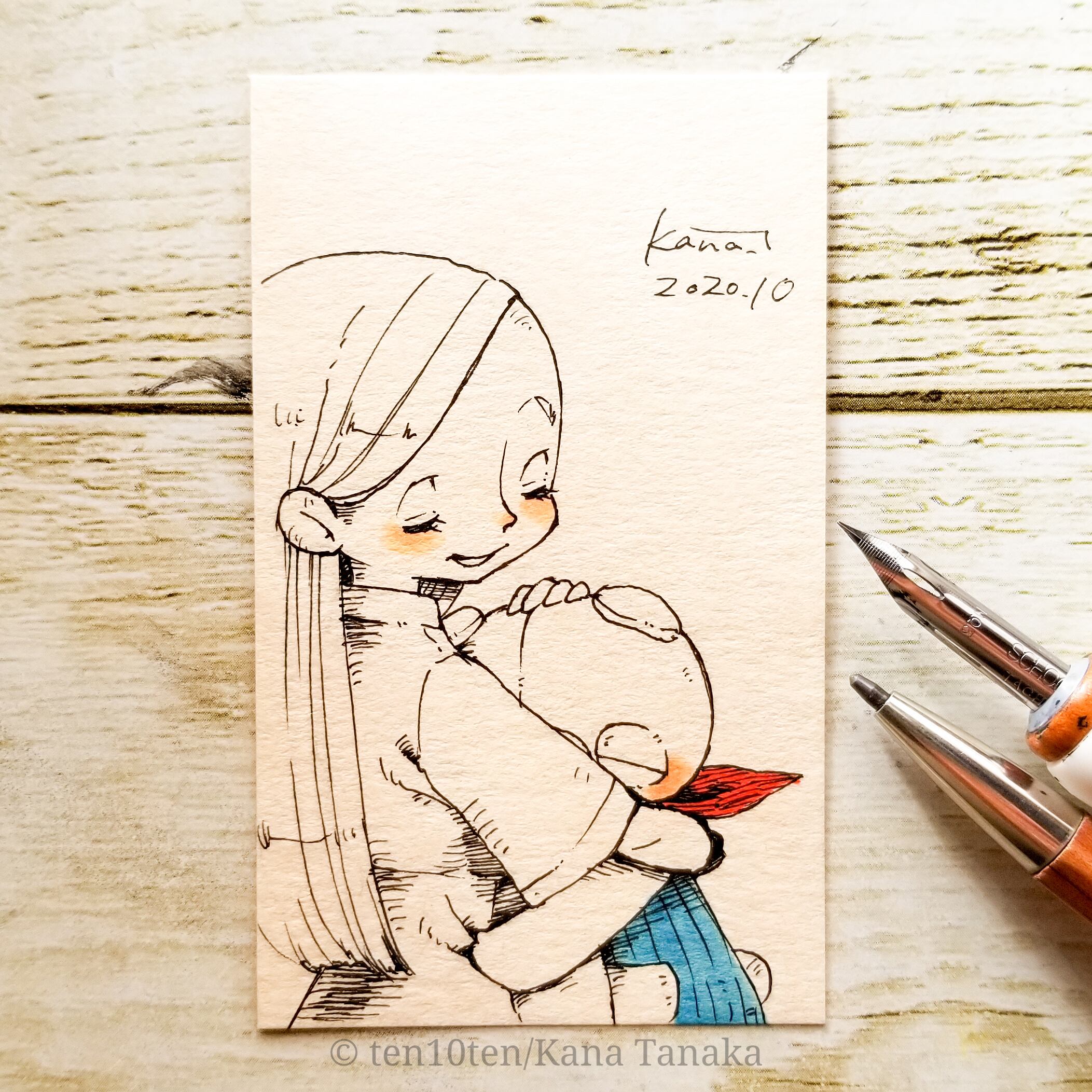 名刺サイズのドローイング作品です。 いつでも側にいるよ。 サイズ:55mm×91mm ケース:硬質塩化ビニル樹脂 ※送料込みの商品です。普通郵便にてお届けします。