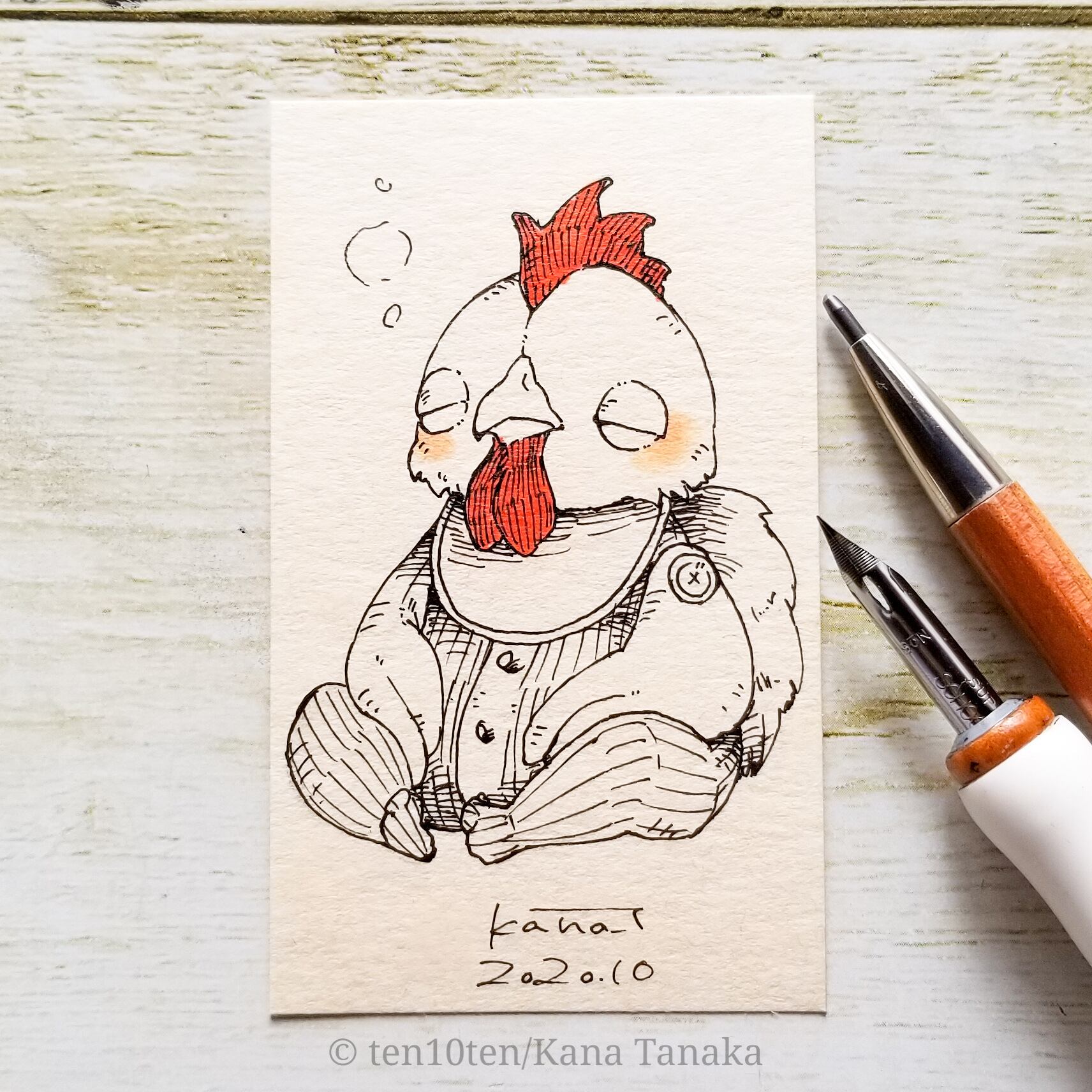 名刺サイズドローイング作品です。 オリジナルキャラクターのぬいぐる'sと巡る今日はなんの日。 今回はニワトリの日。 毎月28日はにわとりの日。 干支の酉年の子も今日はお休み。 サイズ:55mm×91mm ケース:硬質塩化ビニル樹脂 ※送料込みの商品です。普通郵便にてお届けします。