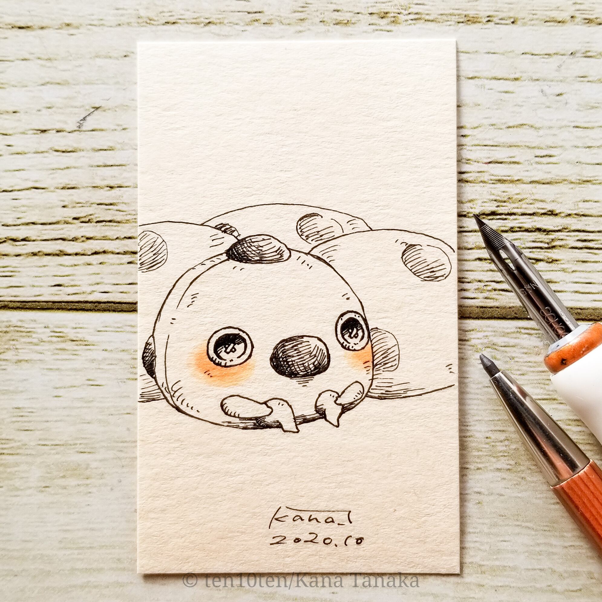 名刺サイズのドローイング作品です。 オリジナルキャラクターのぬいぐる'sには様々な生き物がいます。 今回は豆大福の子。 美味しく食べてくれる人を毎日待っている。 サイズ:55mm×91mm ケース:硬質塩化ビニル樹脂 ※送料込みの商品です。普通郵便にてお届けします。