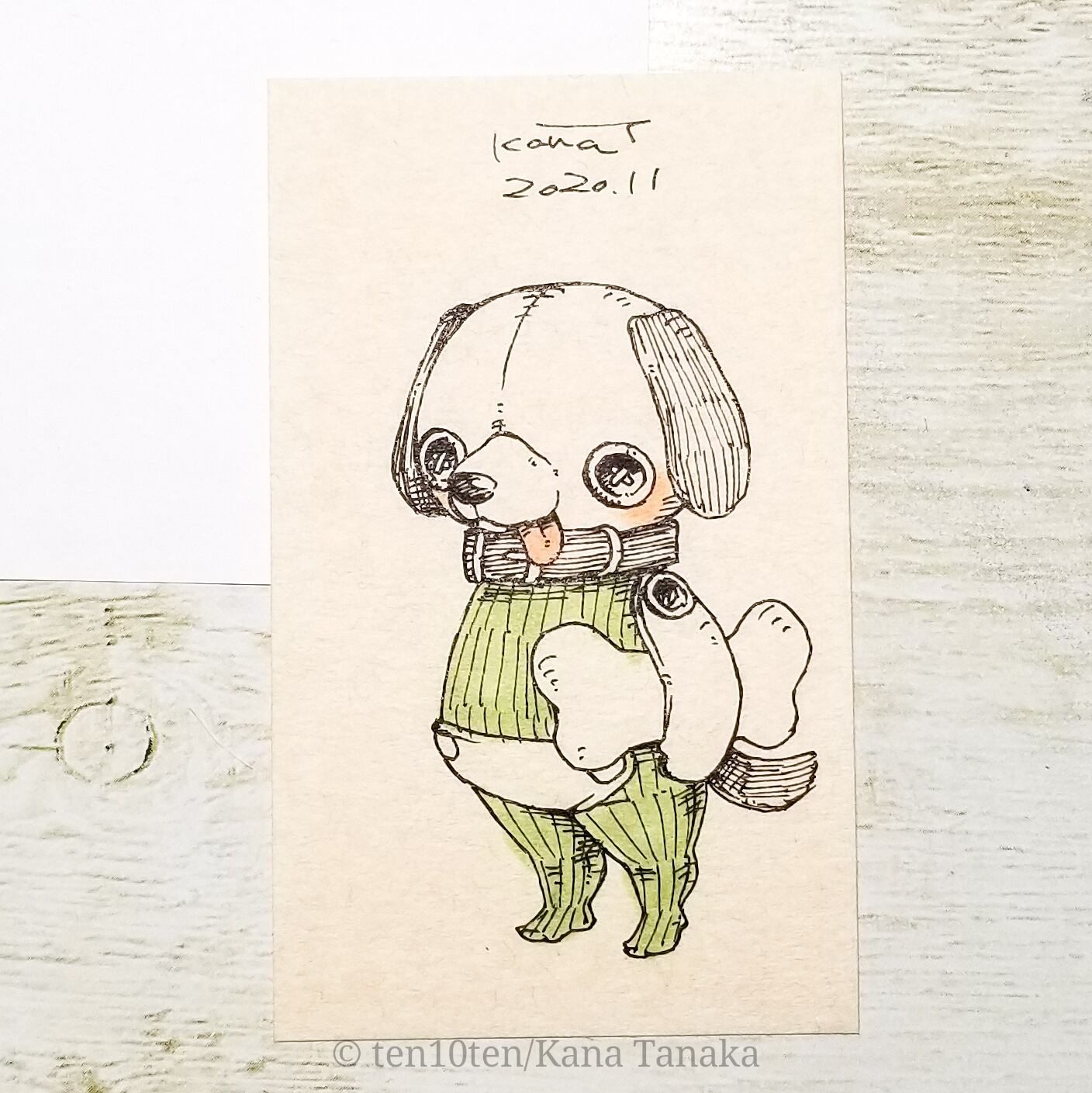 名刺サイズのドローイング作品です。 オリジナルキャラクターのぬいぐる'sには様々な生き物がいます。 今回はいぬの子。 鼻がシュッとしても、やはりベロはしまい忘れてしまう。 サイズ:55mm×91mm ケース:硬質塩化ビニル樹脂 ※送料込みの商品です。普通郵便にてお届けします。