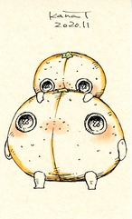名刺サイズのドローイング作品です。 オリジナルキャラクターのぬいぐる'sには様々な生き物がいます。 今回はみかんの子たち。 みかんの日に生まれたみかんの子たちは仲良し兄弟。 おこたと一緒にいかがですか?とカゴの中からこちらを伺っている。 サイズ:55mm×91mm ケース:硬質塩化ビニル樹脂 ※送料込みの商品です。普通郵便にてお届けします。