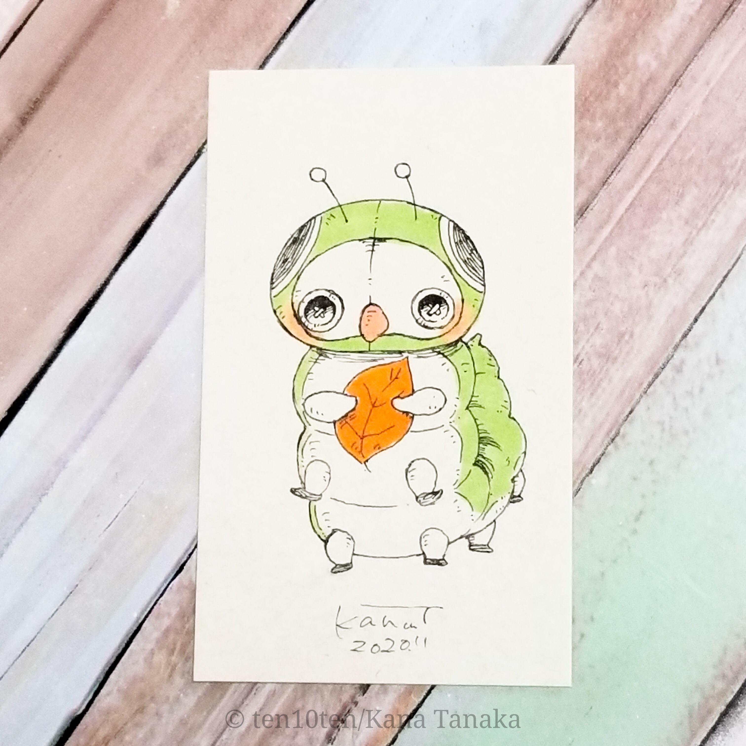 名刺サイズのドローイング作品です。 ぬいぐる'sには色々な生き物がいます。 今回はいもむしの子。 将来の夢はキレイなもの。 今だけ手に入る宝物。 サイズ:55mm×91mm ケース:硬質塩化ビニル樹脂 ※送料込みの商品です。普通郵便にてお届けします。