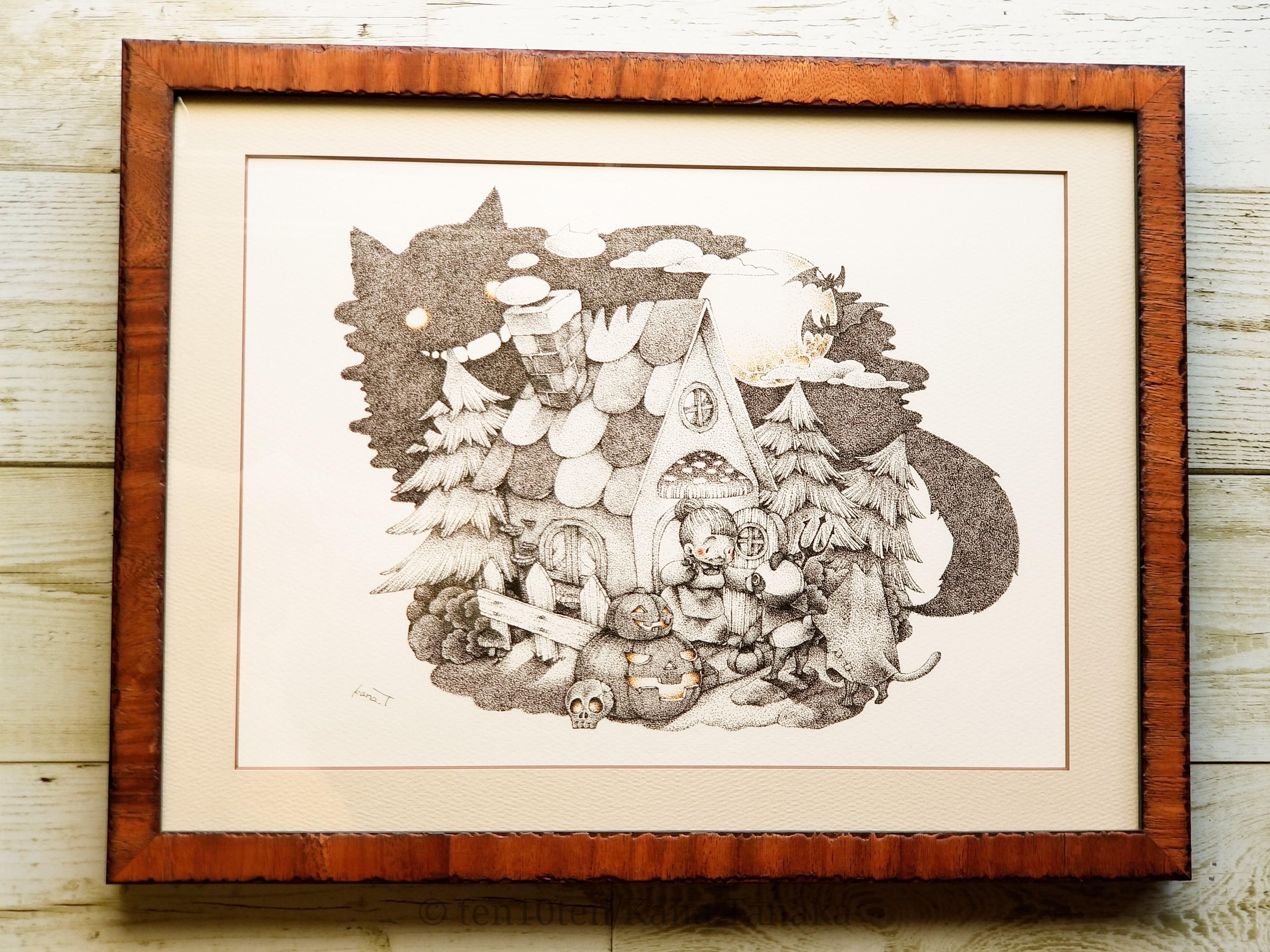 きのこの魔女の家にやってきたのはかわいいオバケたち。 サイズ:約F4サイズ(33.3cm×24.2cm)(額装含まず) 額装:木、アクリル [取り扱いについて] 飾る際には直射日光を避けていただき、保管する際には高温多湿を避けて暗所に保管をお願いします。 特に、直射日光が当たると退色が早く、長く作品を楽しめなくなる可能性がございます。
