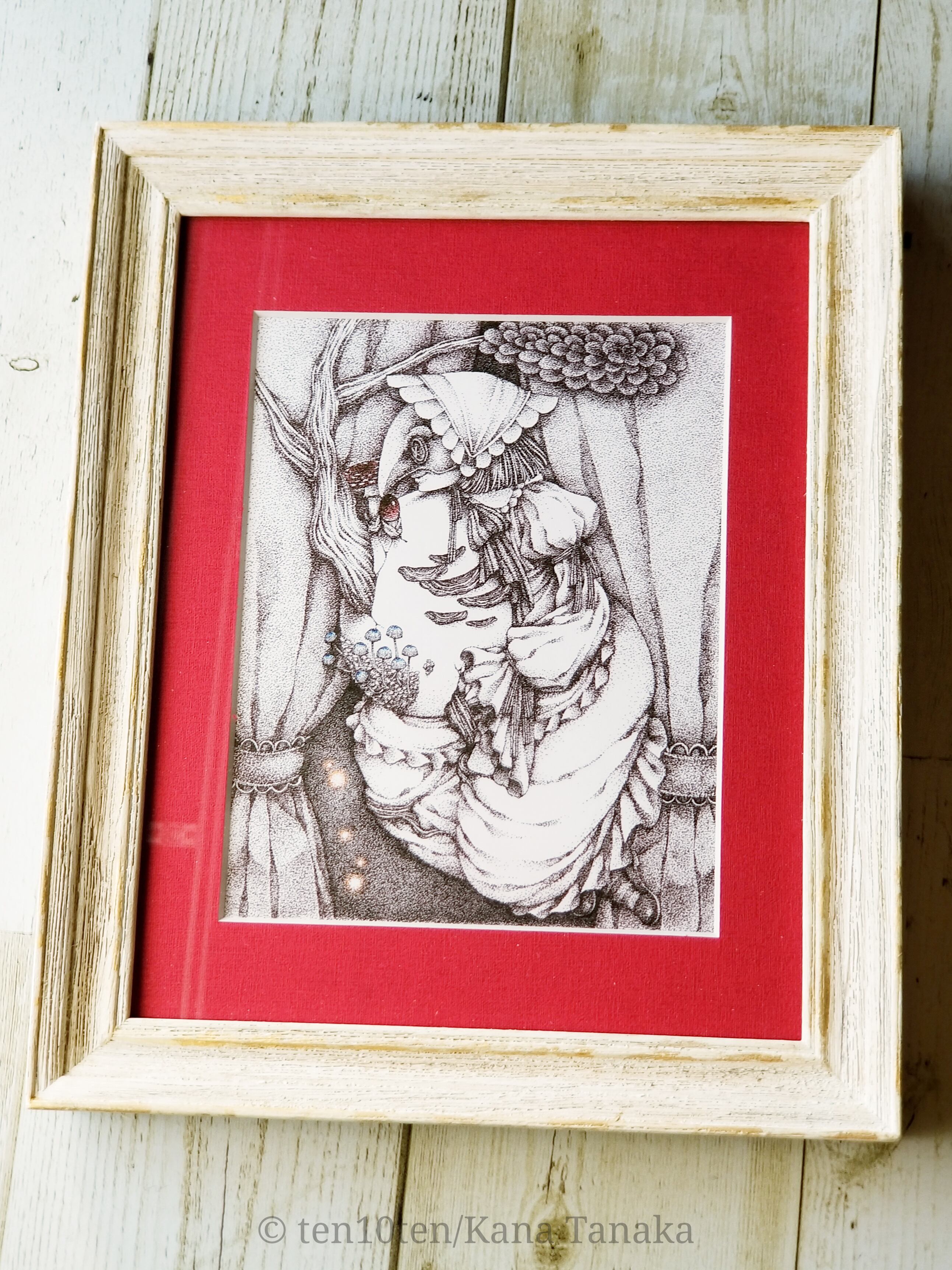 内に秘め隠すものは…。 サイズ:約F0サイズ(18cm×14cm)(額装含まず) 額装:木、アクリル [取り扱いについて] 飾る際には直射日光を避けていただき、保管する際には高温多湿を避けて暗所に保管をお願いします。 特に、直射日光が当たると退色が早く、長く作品を楽しめなくなる可能性がございます。