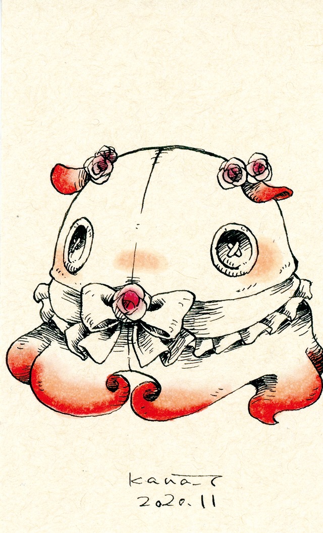 名刺サイズのドローイング作品です。 オリジナルキャラクターのぬいぐる'sには様々な生き物がいます。 今回はメンダコの子。 今日は深海でパーティ。 紳士とレディが出会う場所。 サイズ:55mm×91mm ケース:硬質塩化ビニル樹脂 ※送料込みの商品です。普通郵便にてお届けします。
