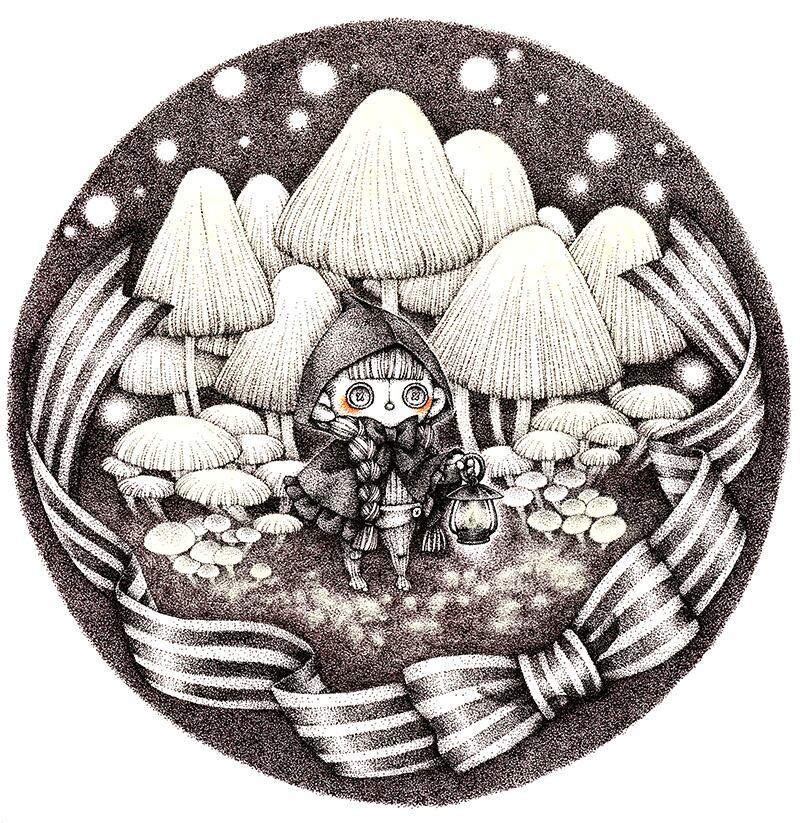 夜光きのこの森・点描画