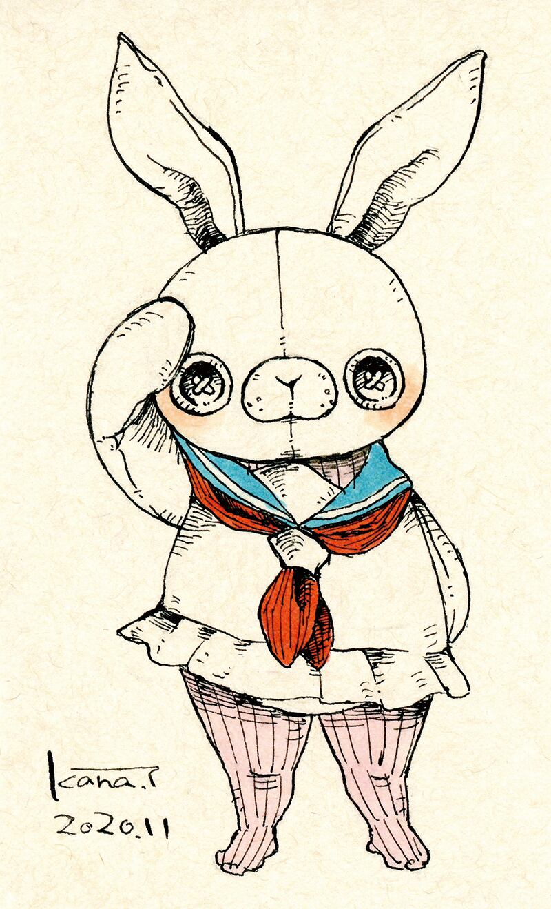名刺サイズのドローイング作品です。 オリジナルキャラクターのぬいぐる'sには様々な生き物がいます。 今回はうさぎの子。 フリルを足してちょっとお洒落に。 サイズ:55mm×91mm ケース:硬質塩化ビニル樹脂 ※送料込みの商品です。普通郵便にてお届けします。