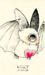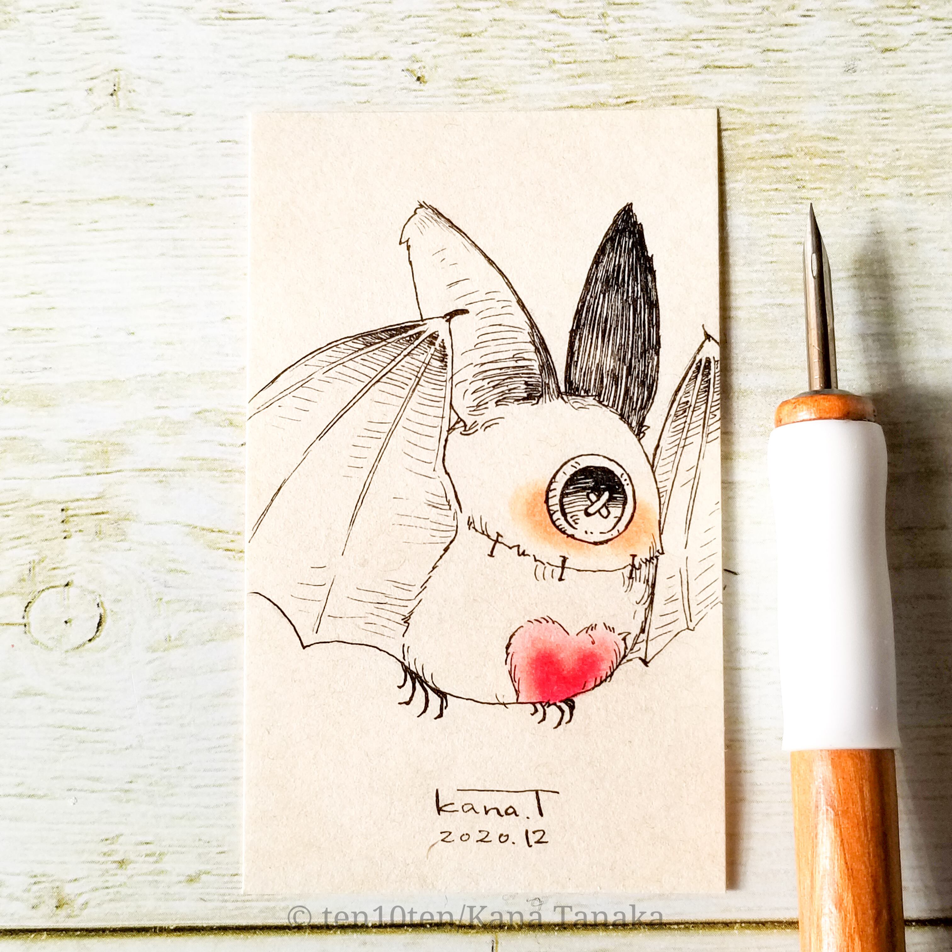 名刺サイズのドローイング作品です。 オリジナルキャラクターのぬいぐる'sには様々な生き物がいます。 今回は一つ目コウモリ。 手のひらにすっぽり収まるサイズ。 サイズ:55mm×91mm ケース:硬質塩化ビニル樹脂 ※送料込みの商品です。普通郵便にてお届けします。