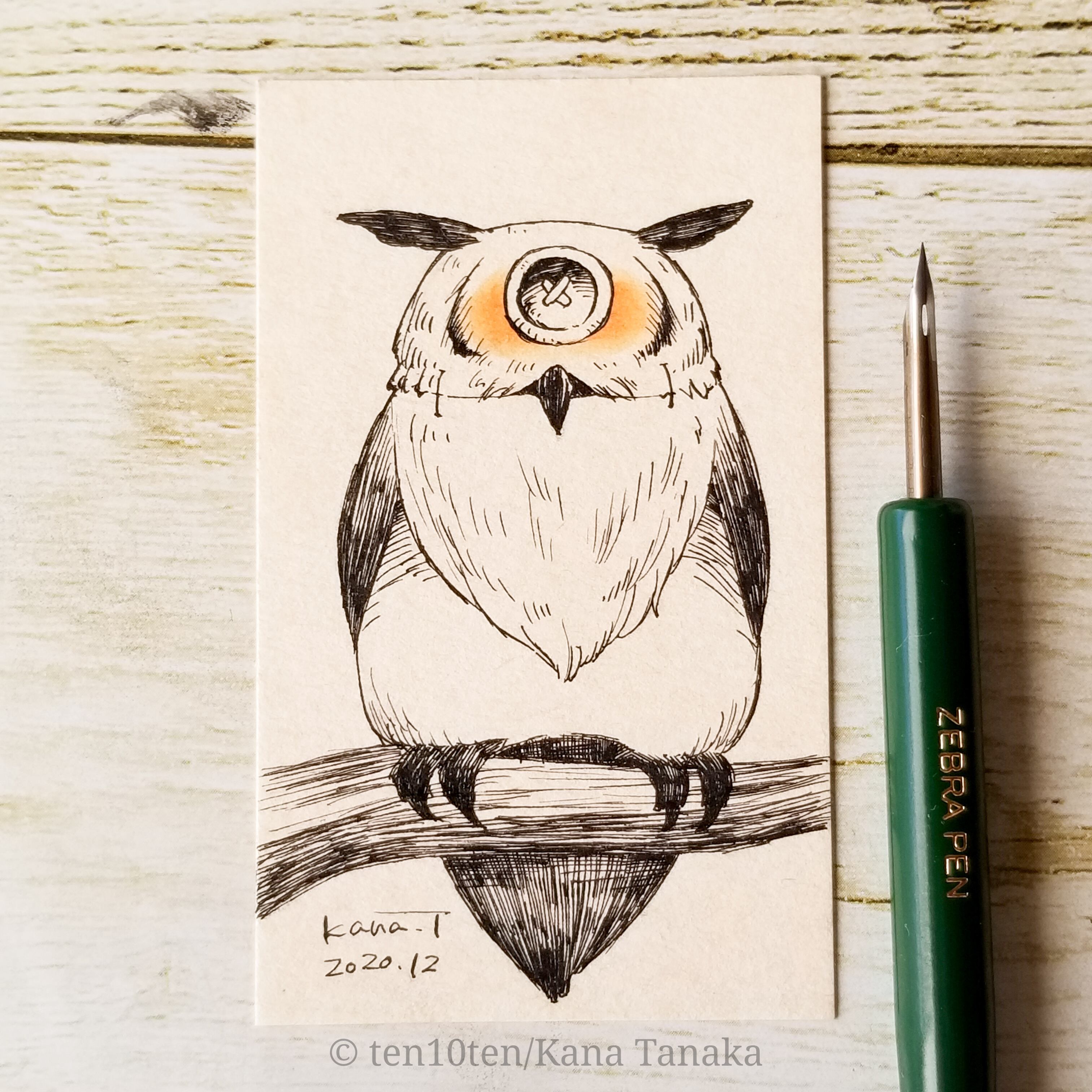 名刺サイズのドローイング作品です。 オリジナルキャラクターのぬいぐる'sには様々な生き物がいます。 今回は一つ目ミミズク。 一つ目の子たちは暗い森に暮らしています。 暗い森が更に暗くなる夜、ミミズクは何処からともなく現れます。 サイズ:55mm×91mm ケース:硬質塩化ビニル樹脂 ※送料込みの商品です。普通郵便にてお届けします。
