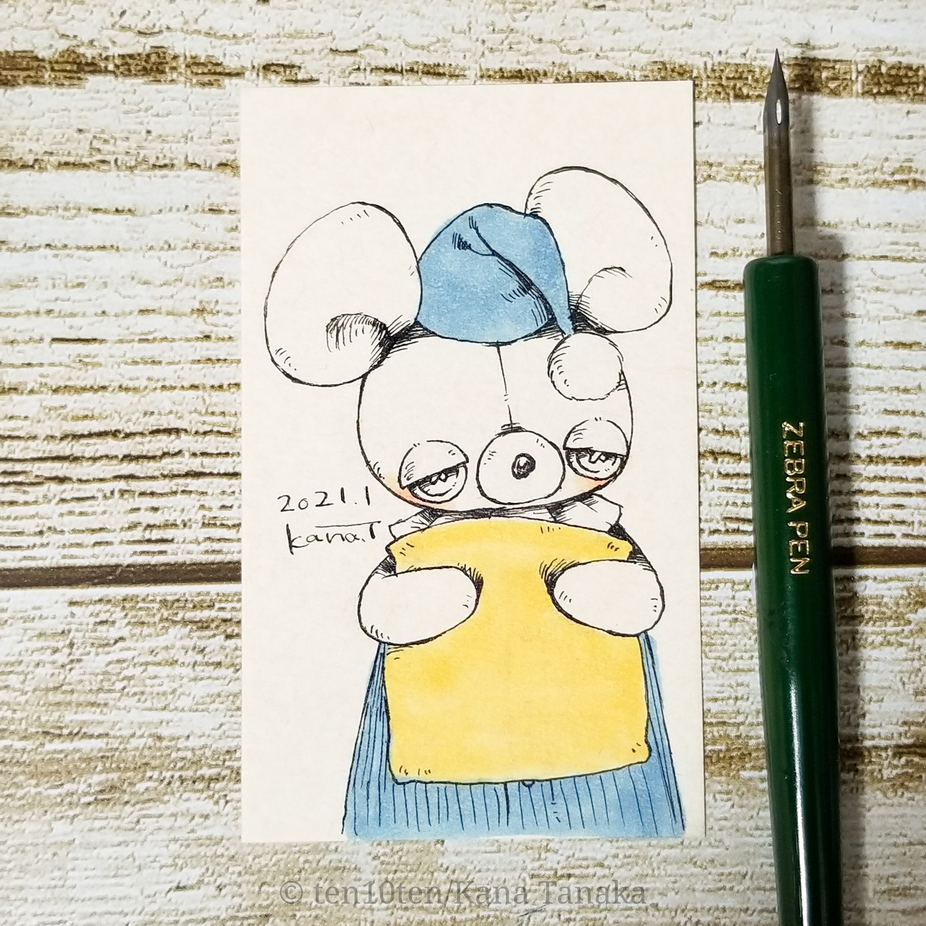名刺サイズのドローイング作品です。 オリジナルキャラクターのぬいぐる'sには様々な生き物がいます。 今回はねずみの子。 お気に入りの枕を抱いて。 サイズ:55mm×91mm ケース:硬質塩化ビニル樹脂 ※送料込みの商品です。普通郵便にてお届けします。 ※ドローイングの発送は毎週月曜日にまとめて行います。