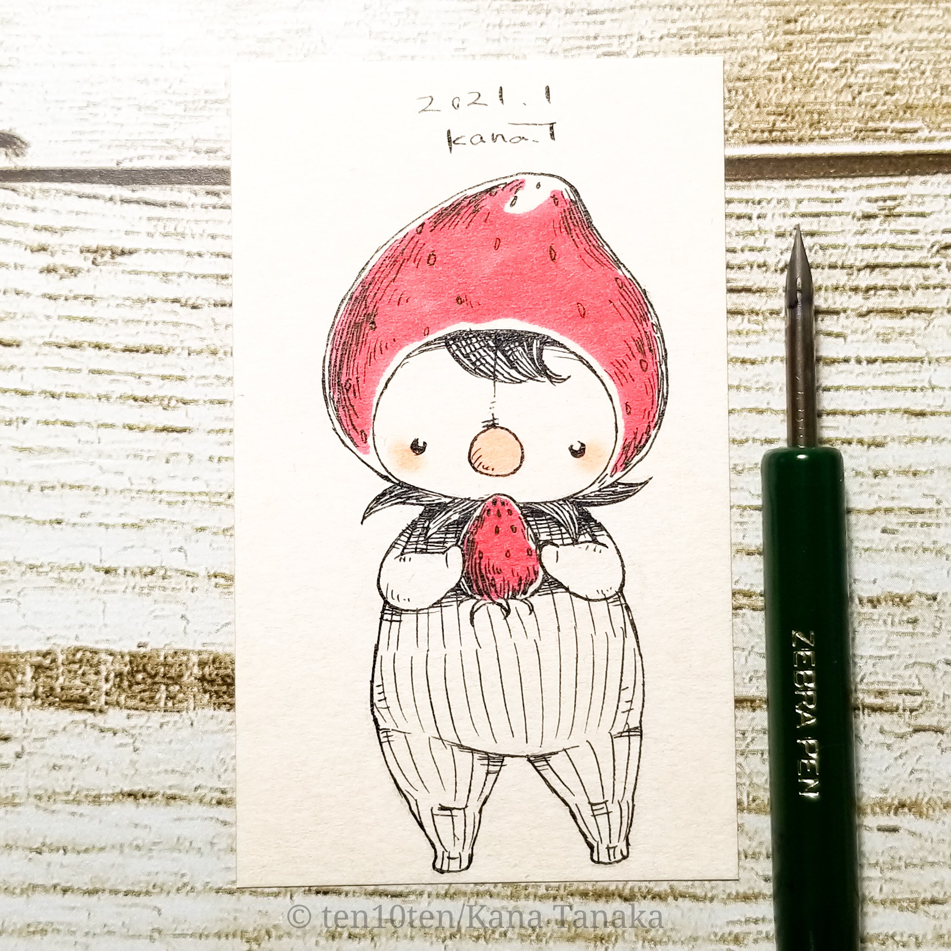 名刺サイズのドローイング作品です。 オリジナルキャラクターのぬいぐる'sには様々な生き物がいます。 今回は小人さん。 イチゴの日には苺と一緒に苺になりきる小人さん。 サイズ:55mm×91mm ケース:硬質塩化ビニル樹脂 ※送料込みの商品です。普通郵便にてお届けします。 ※ドローイングの発送は毎週月曜日にまとめて行います。