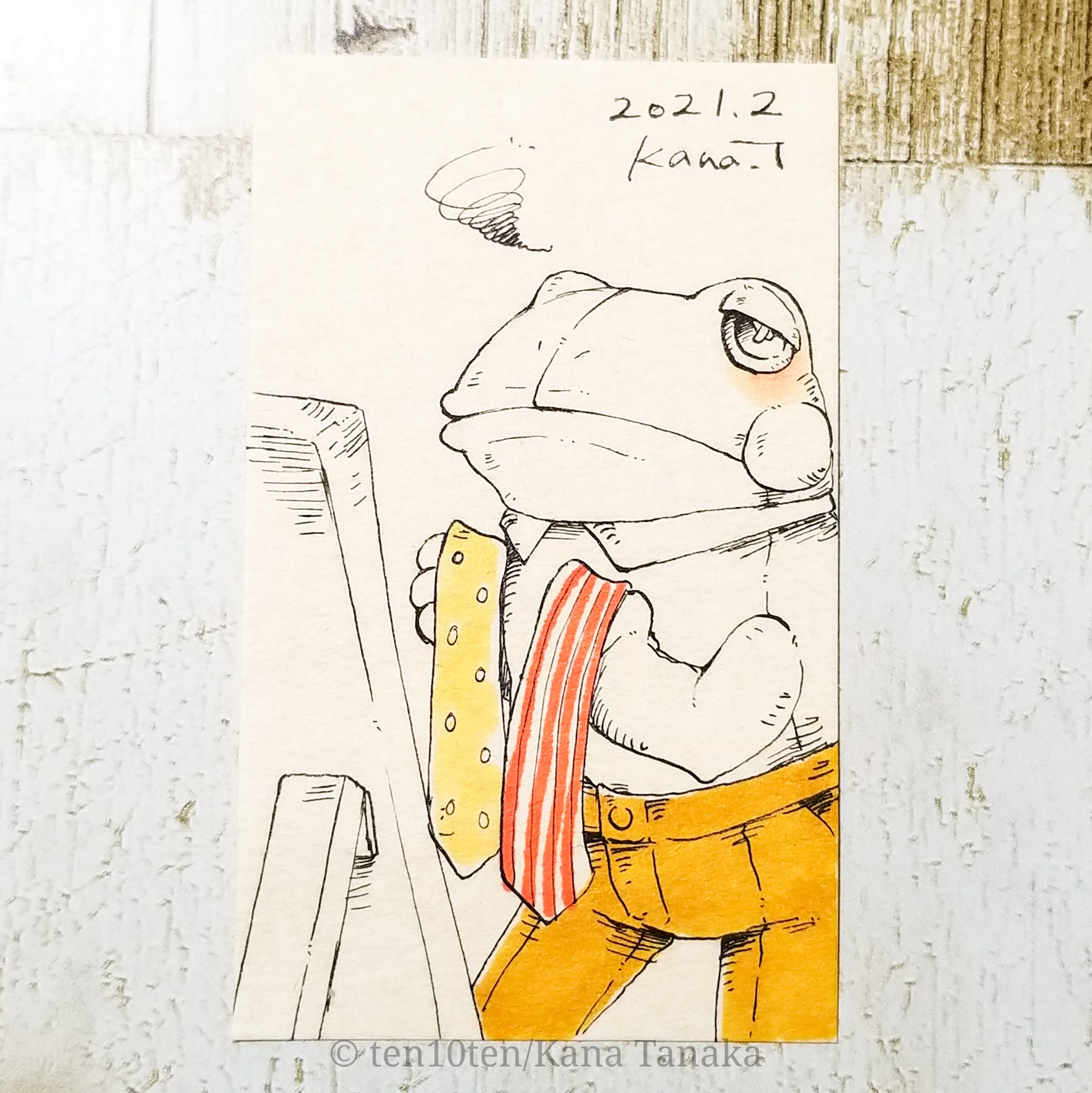 名刺サイズのドローイング作品です。 オリジナルキャラクターのぬいぐる'sには、色々な生き物がいます。 今回はけろリーマン。 今日は何か特別な日みたい。 サイズ:55mm×91mm ケース:硬質塩化ビニル樹脂 ※送料込みの商品です。普通郵便にてお届けします。 ※ドローイングの発送は毎週月曜日にまとめて行います。