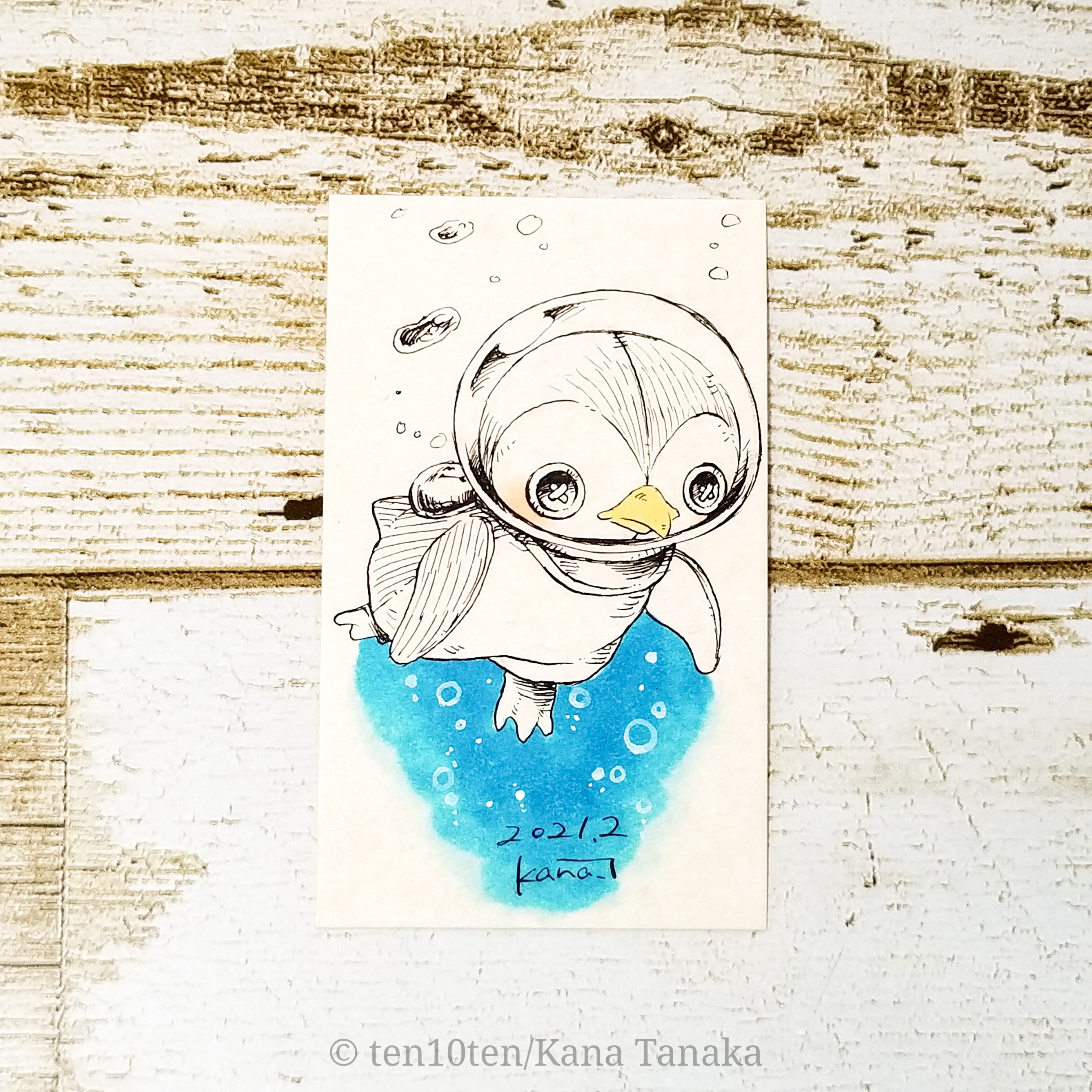 名刺サイズのドローイング作品です。 オリジナルキャラクターのぬいぐる'sには、色々な生き物がいます。 今回はペンギンの子。 泳ぐのは好きだけど水は苦手。 サイズ:55mm×91mm ケース:硬質塩化ビニル樹脂 ※送料込みの商品です。普通郵便にてお届けします。 ※ドローイングの発送は毎週月曜日にまとめて行います。