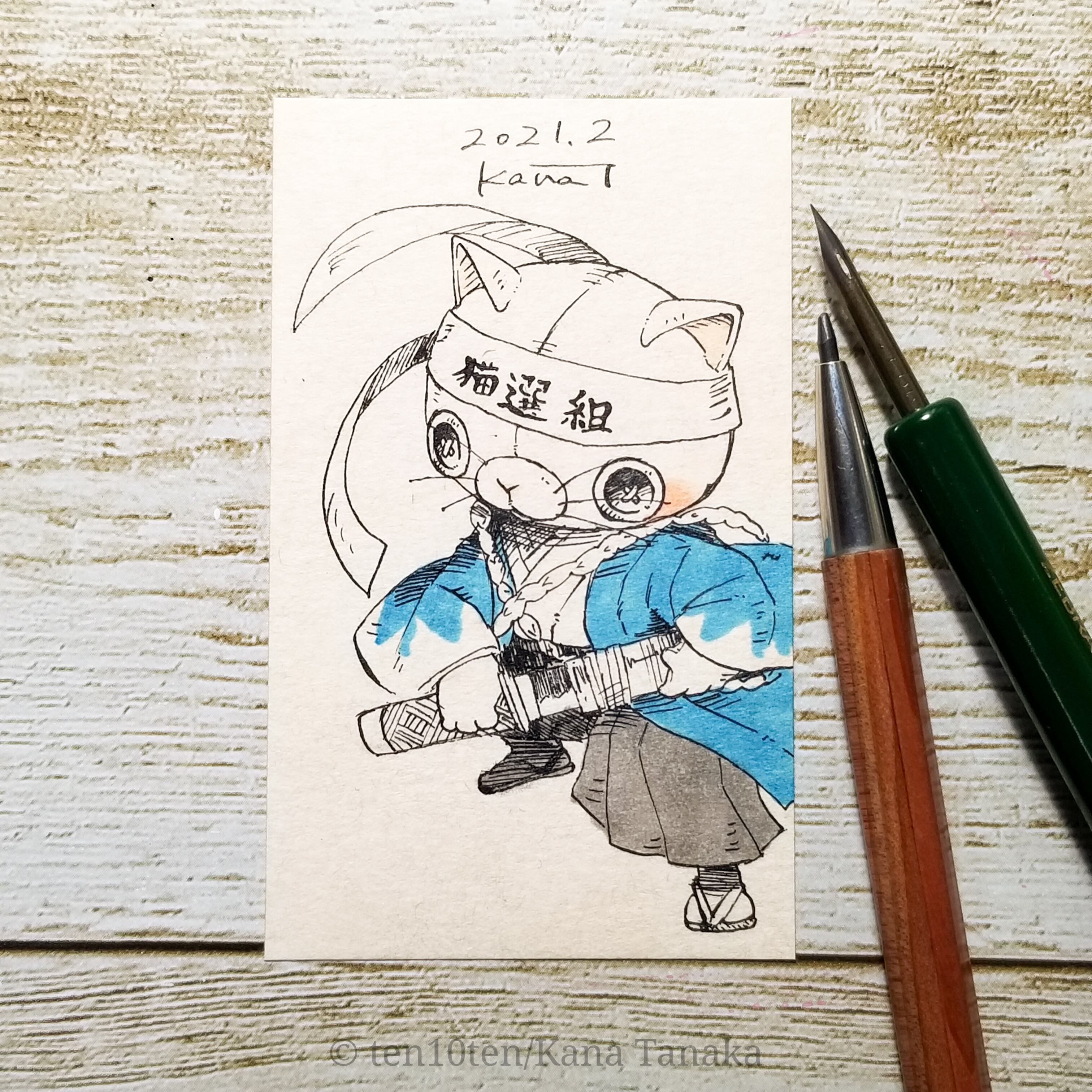 名刺サイズのドローイング作品です。 オリジナルキャラクターのぬいぐる'sには、色々な生き物がいます。 今回はにゃん選組。 新選組に憧れてるねこの子。 刀が長くて中々抜けない。 サイズ:55mm×91mm ケース:硬質塩化ビニル樹脂 ※送料込みの商品です。普通郵便にてお届けします。 ※ドローイングの発送は毎週月曜日にまとめて行います。